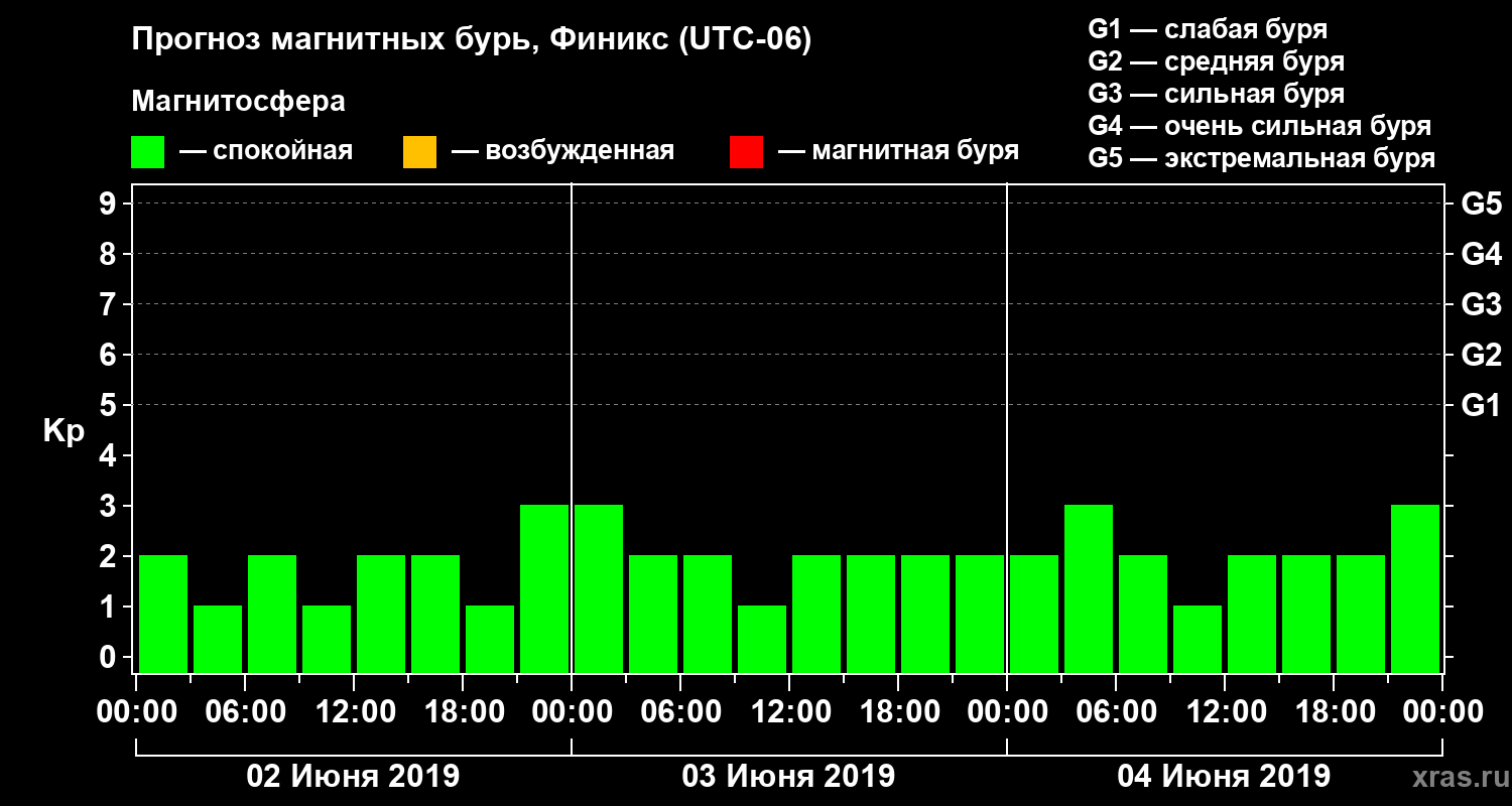 Прогноз магнитных бурь в Финиксе — 2 июня 2019 года