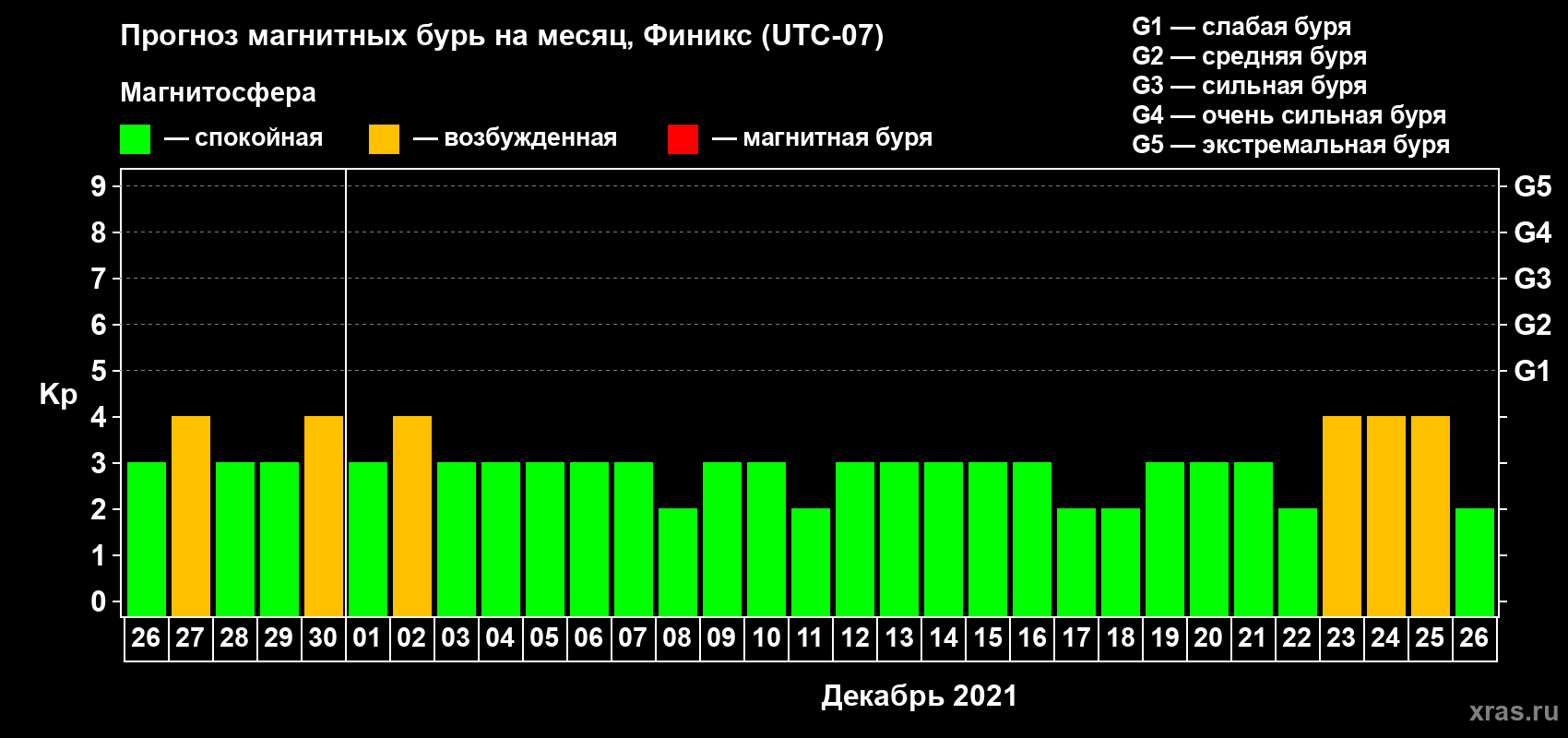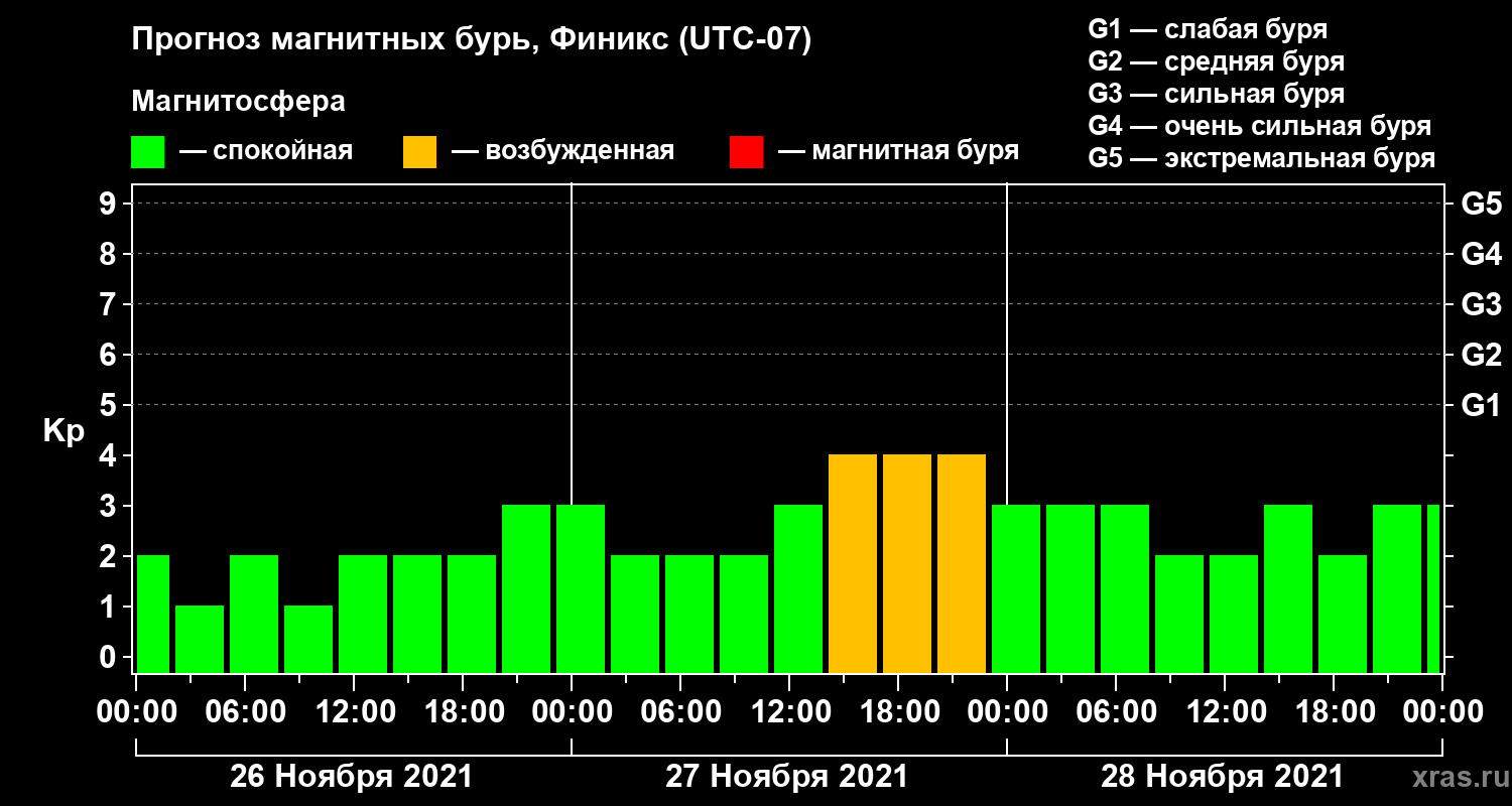 Прогноз магнитных бурь в Финиксе — 26 ноября 2021 года