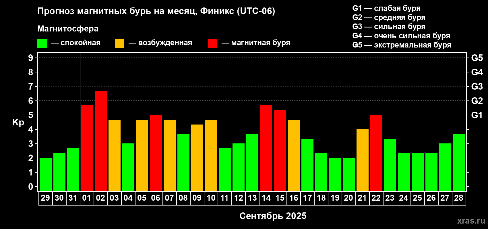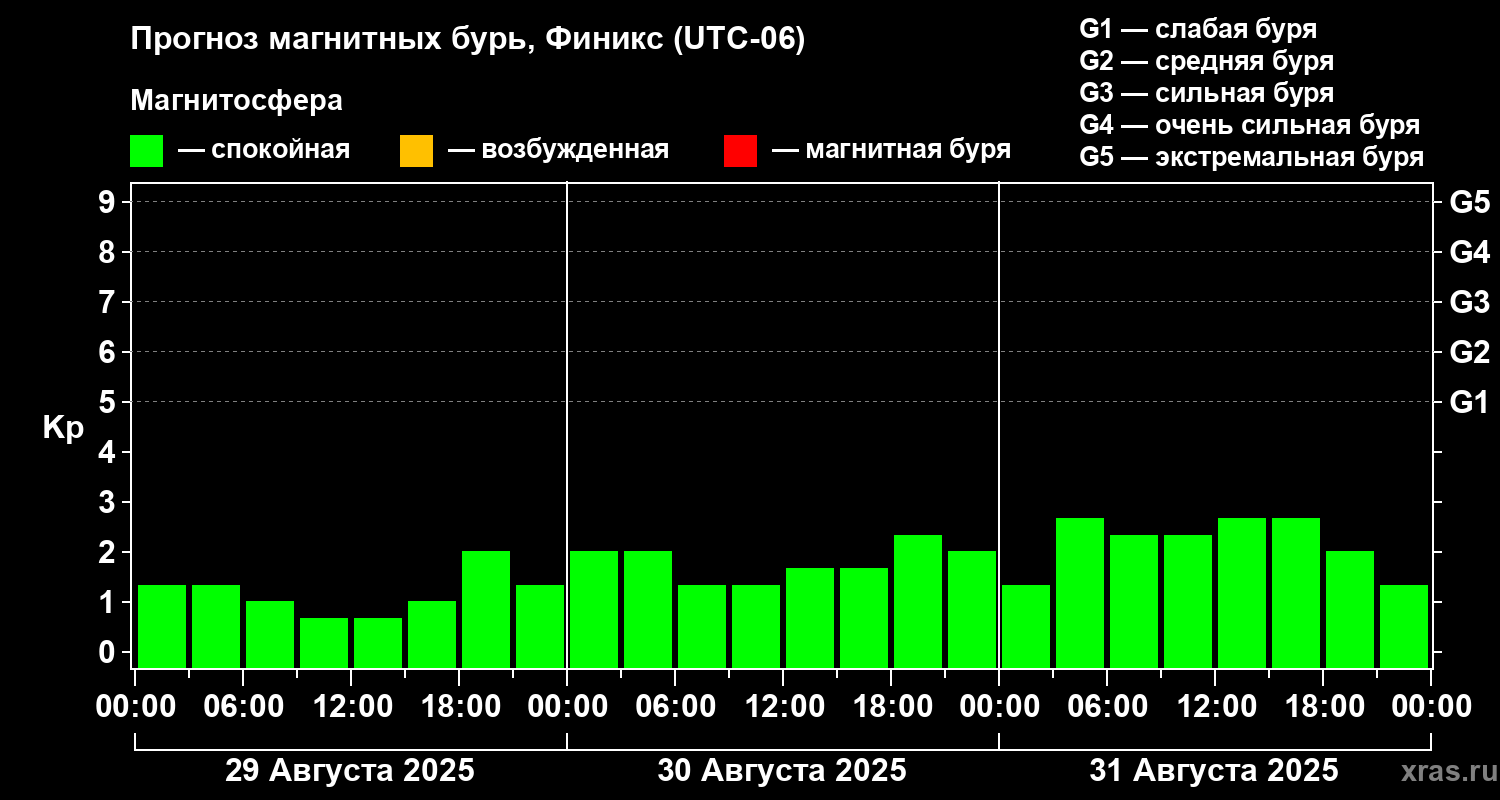Прогноз магнитных бурь в Финиксе — 29 августа 2025 года