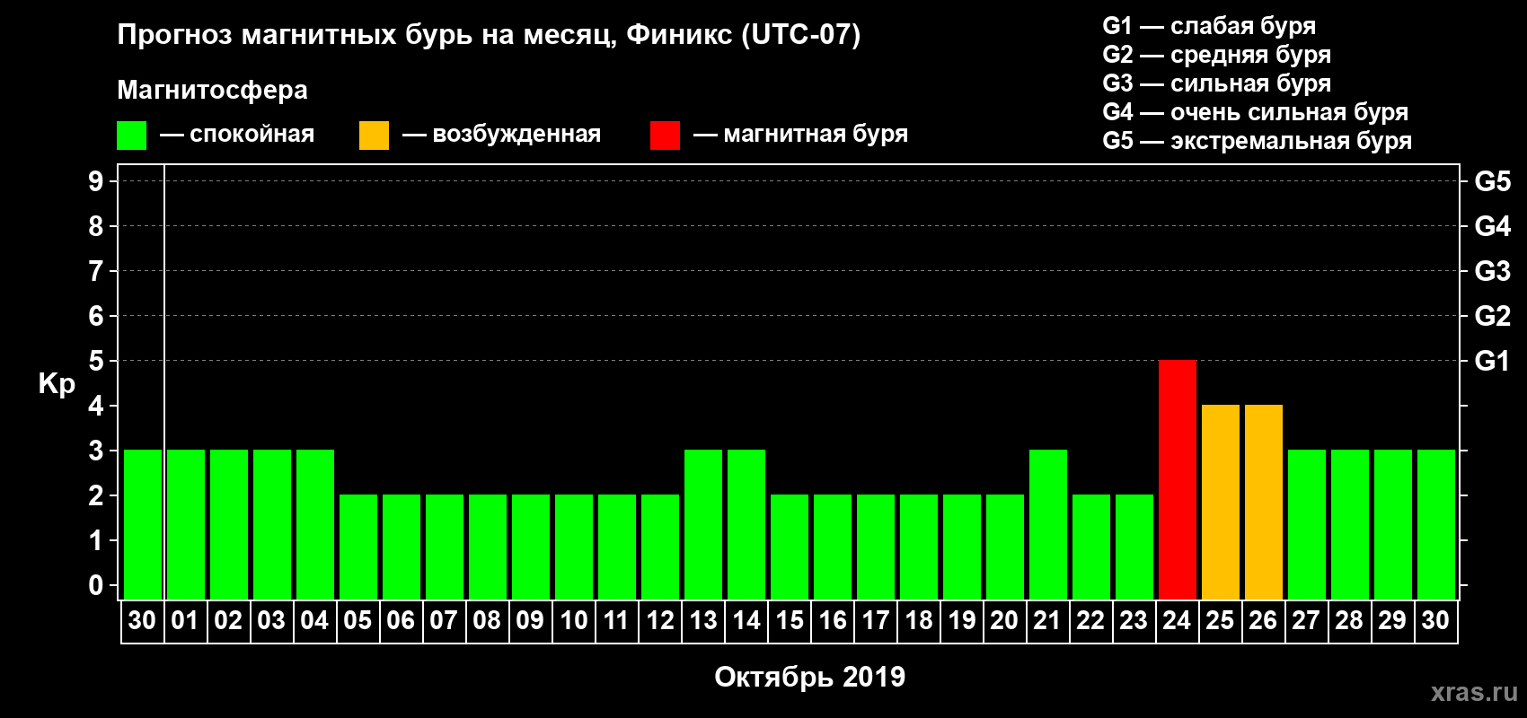 Прогноз магнитных бурь в Финиксе — 30 сентября 2019 года