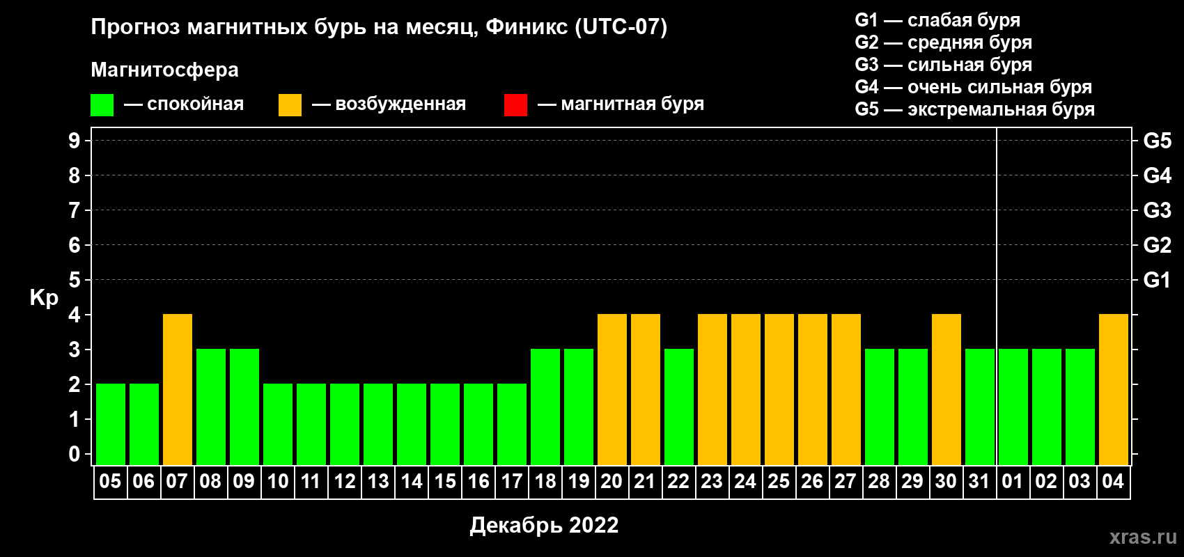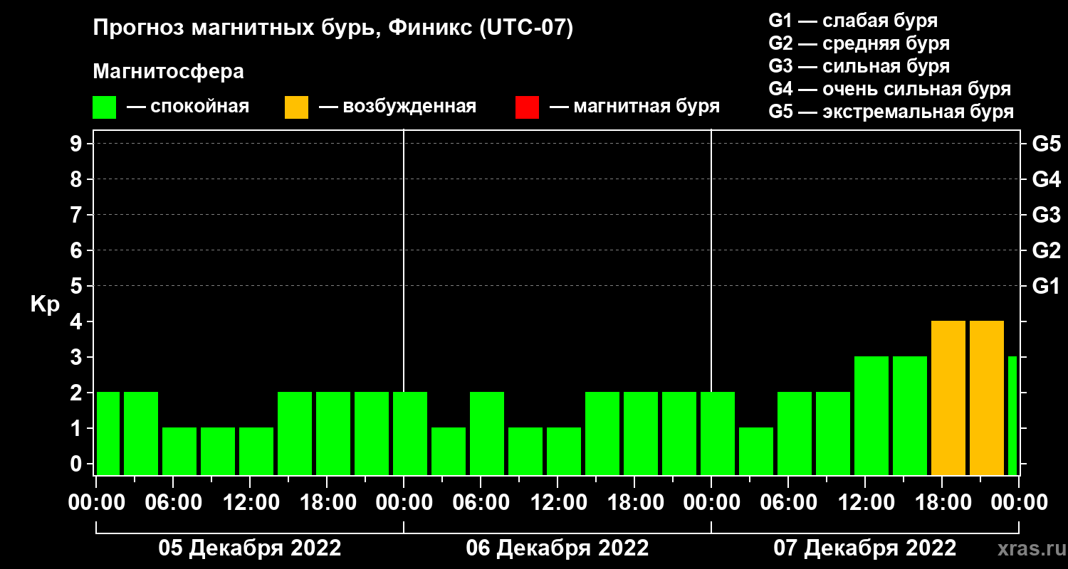Прогноз магнитных бурь в Финиксе — 5 декабря 2022 года