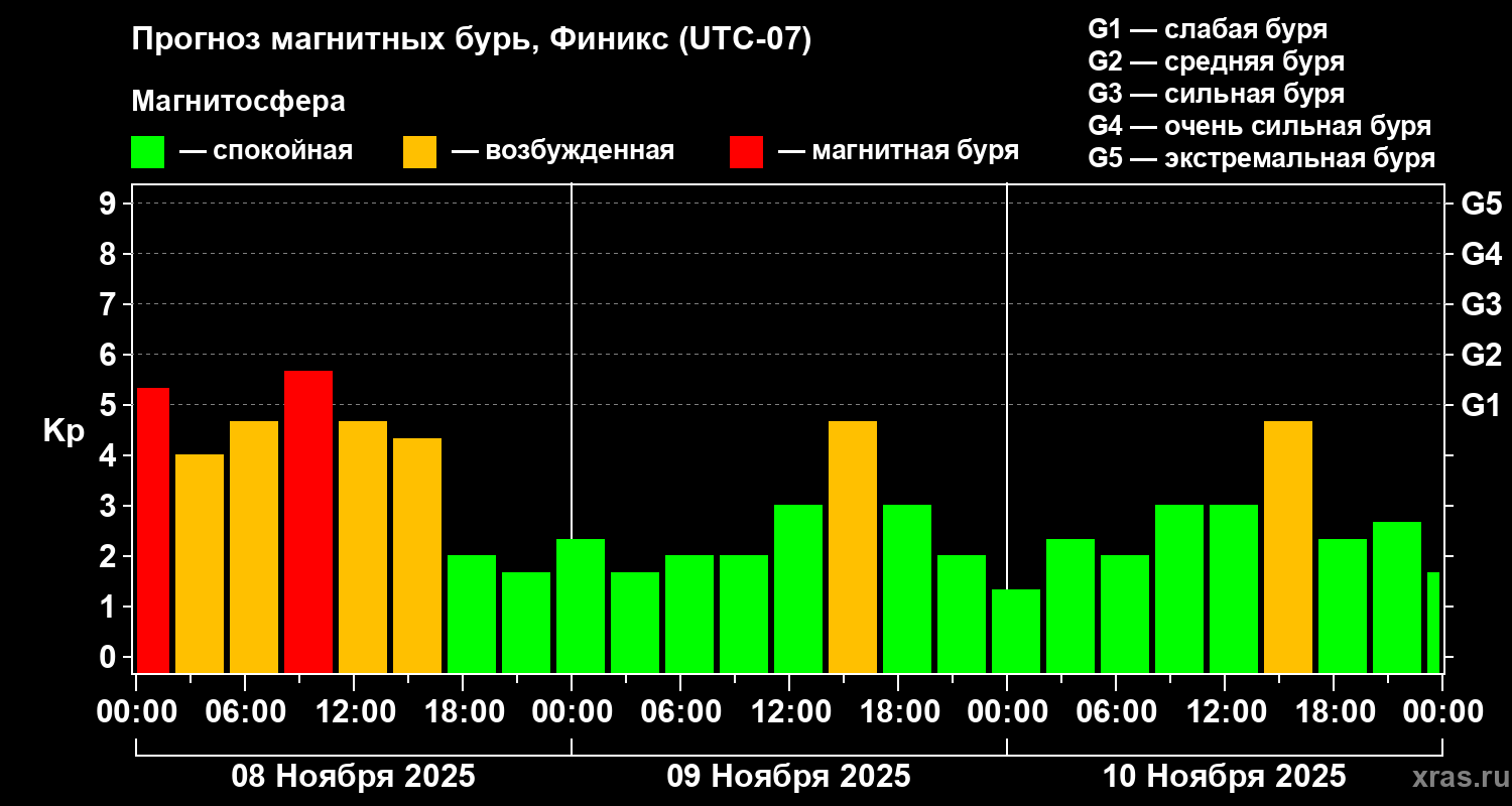 Прогноз магнитных бурь в Финиксе — 8 ноября 2025 года