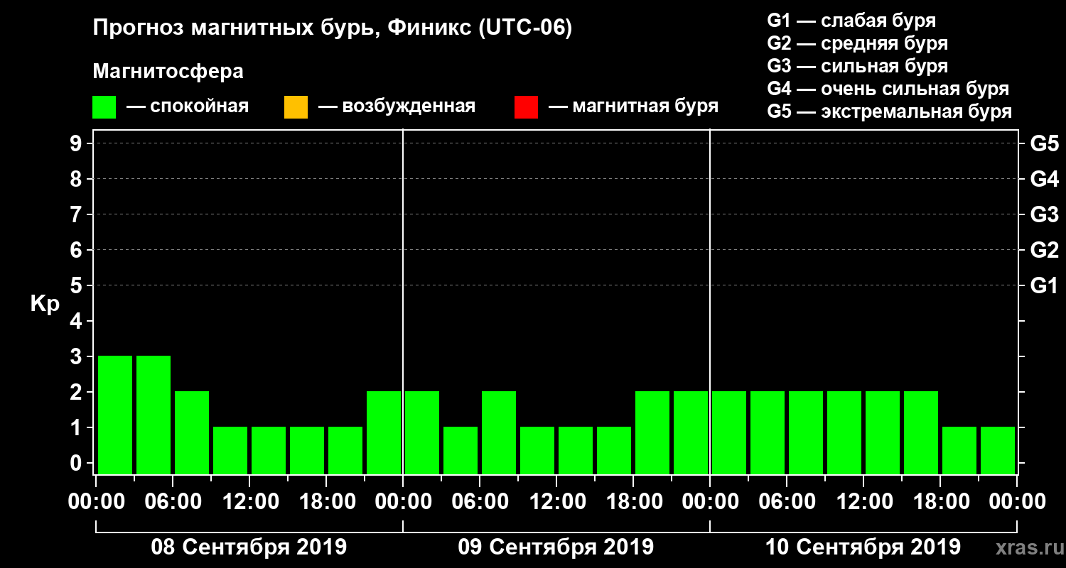 Прогноз магнитных бурь в Финиксе — 8 сентября 2019 года