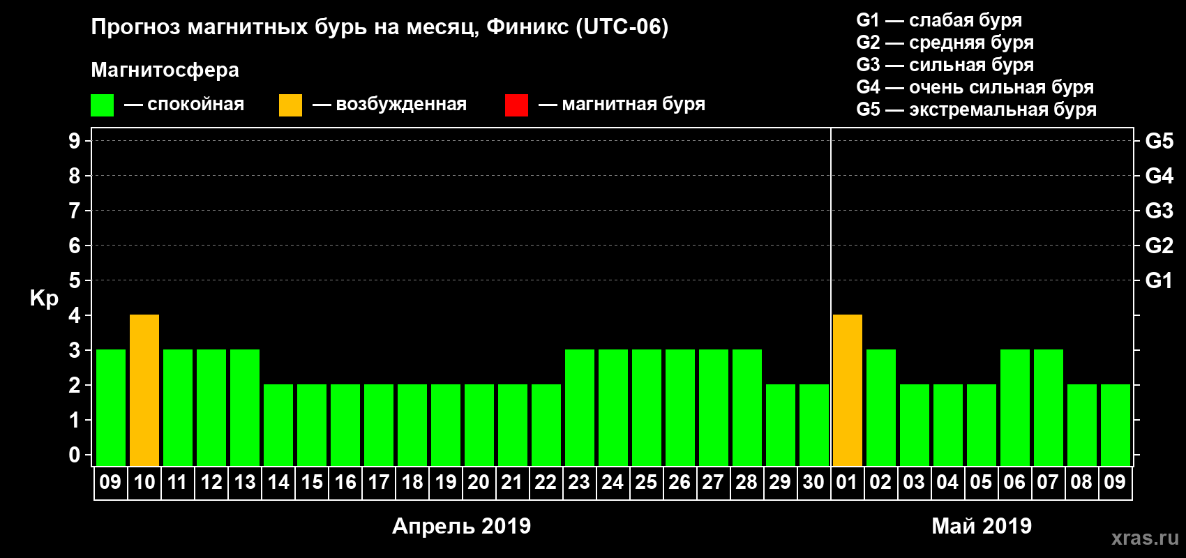 Прогноз магнитных бурь в Финиксе — 9 апреля 2019 года