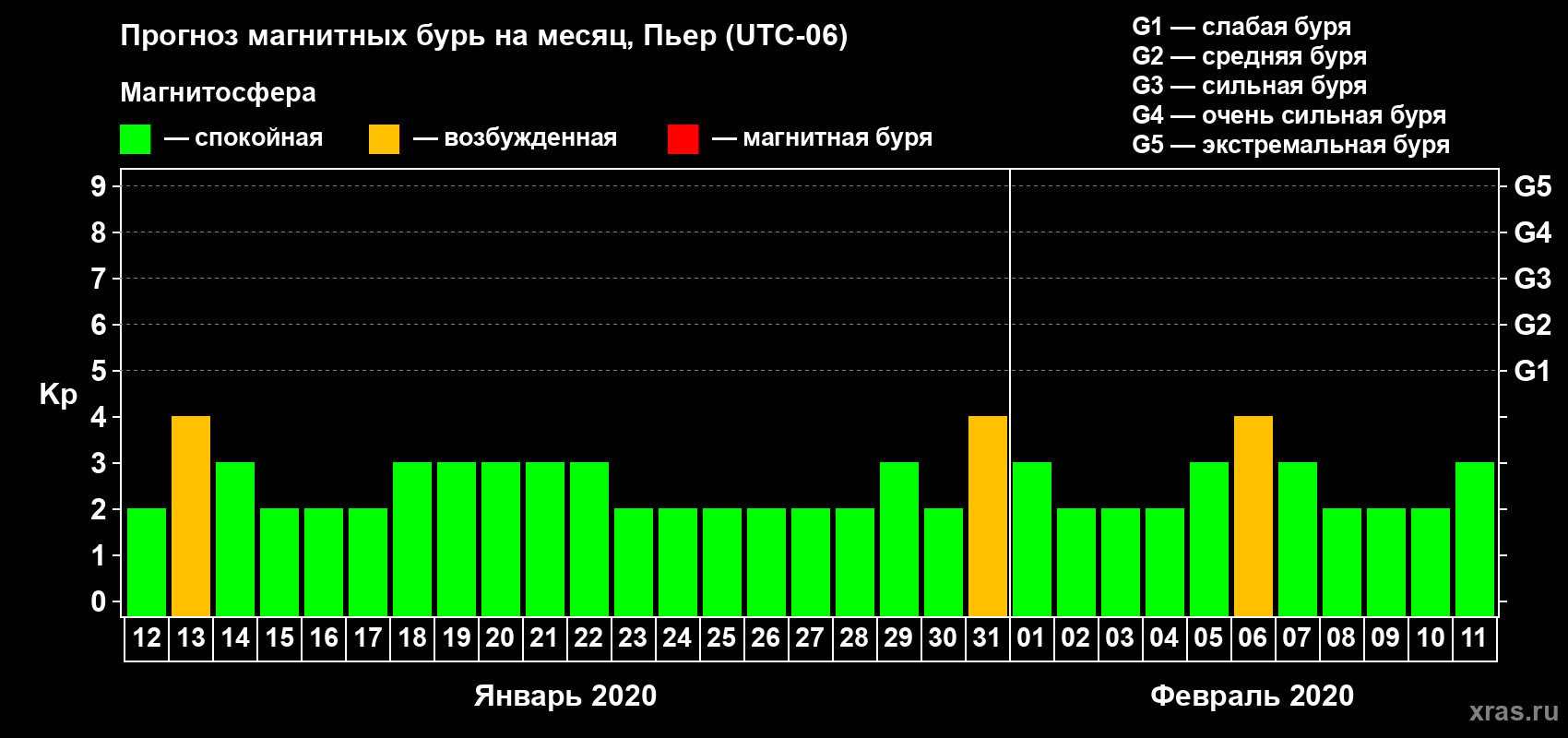 Прогноз магнитных бурь в Пьере — 12 января 2020 года