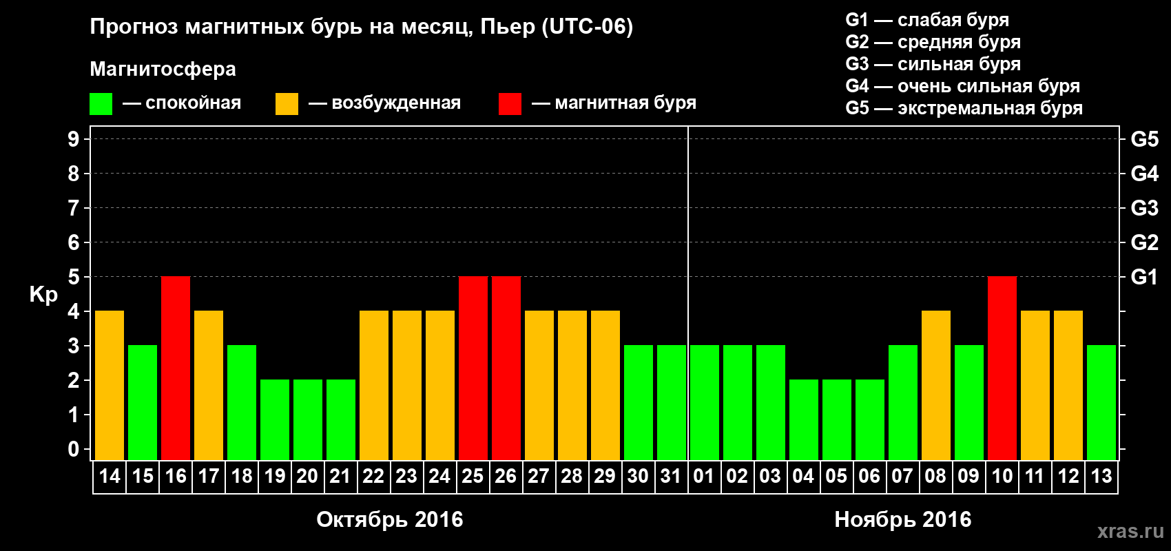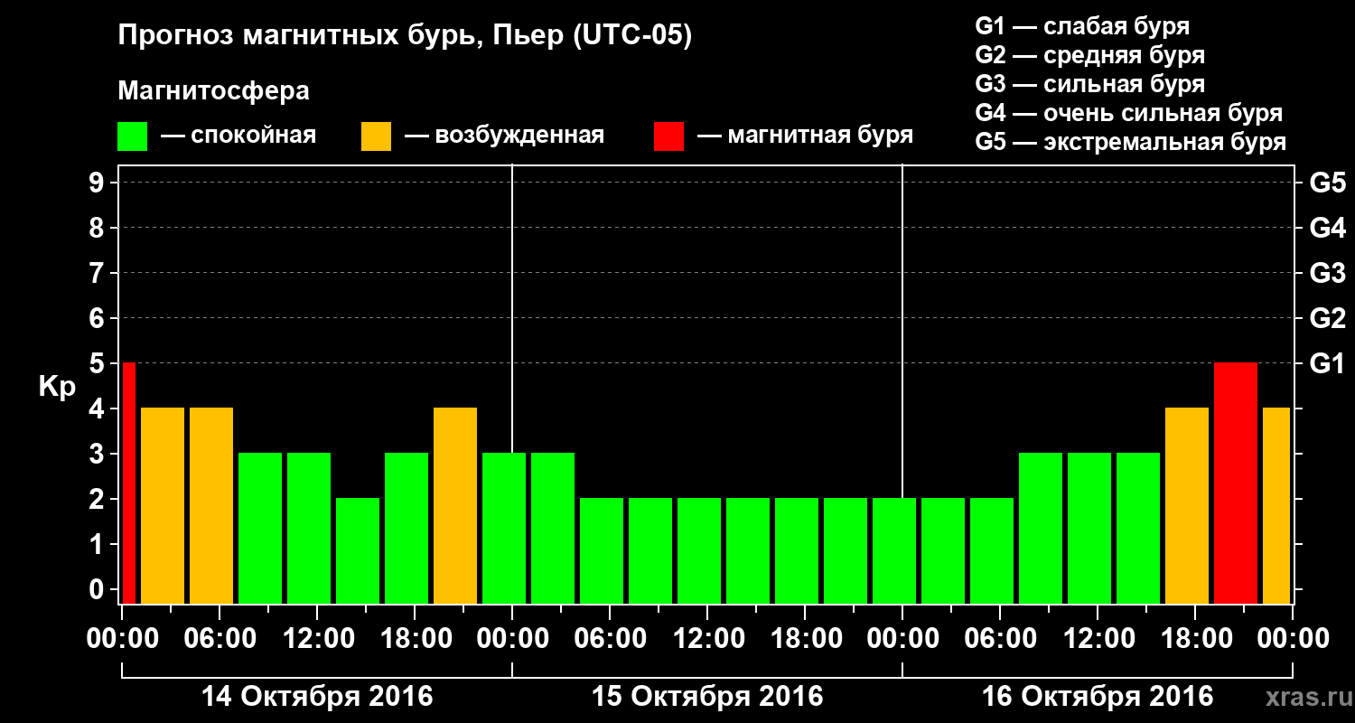 Прогноз магнитных бурь в Пьере — 14 октября 2016 года