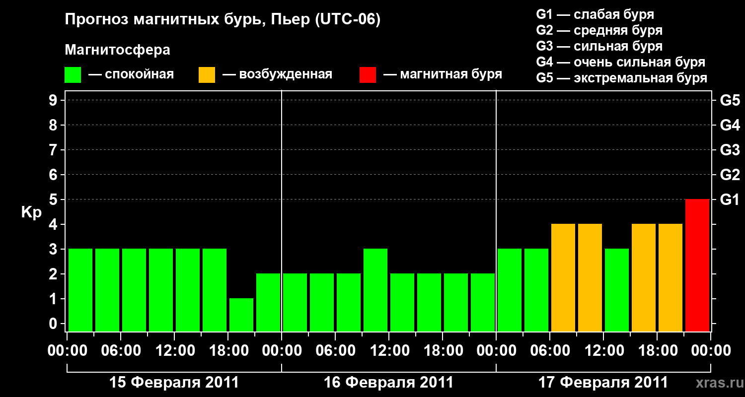 Прогноз магнитных бурь в Пьере — 15 февраля 2011 года