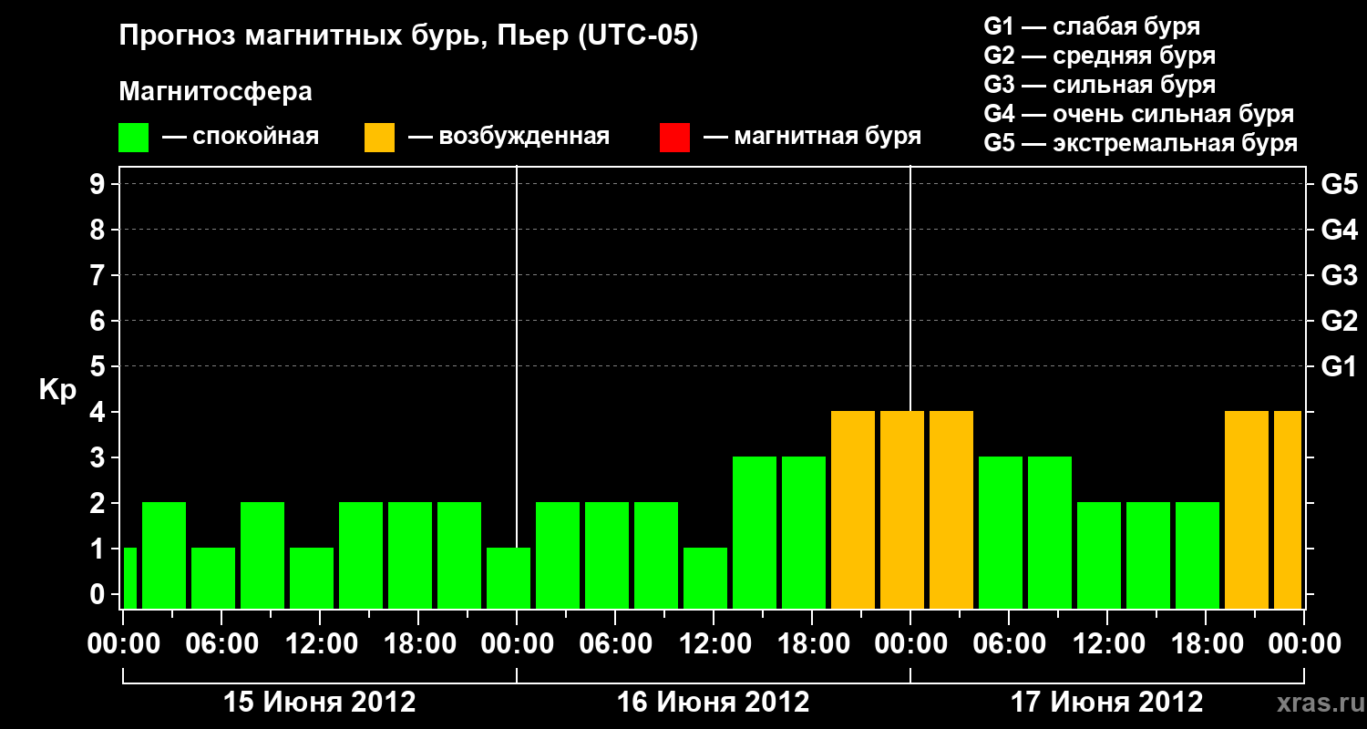 Прогноз магнитных бурь в Пьере — 15 июня 2012 года
