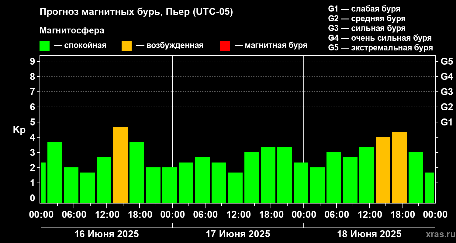 Прогноз магнитных бурь в Пьере — 16 июня 2025 года