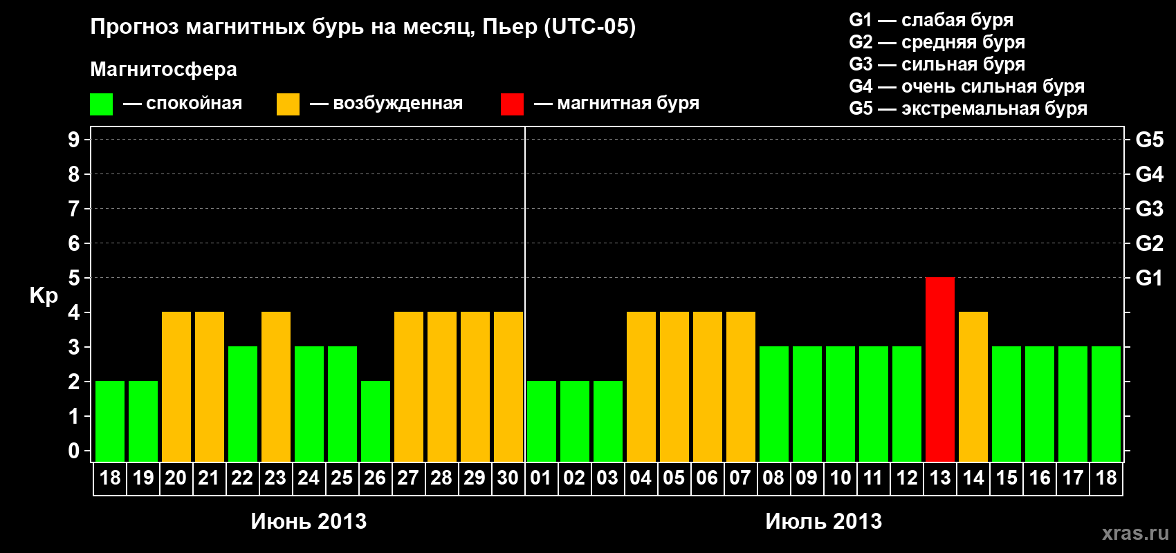 Прогноз магнитных бурь в Пьере — 18 июня 2013 года