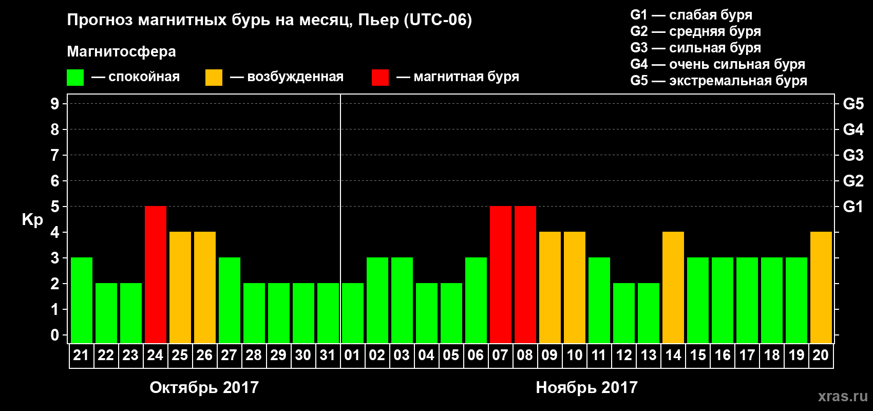 Прогноз магнитных бурь в Пьере — 21 октября 2017 года