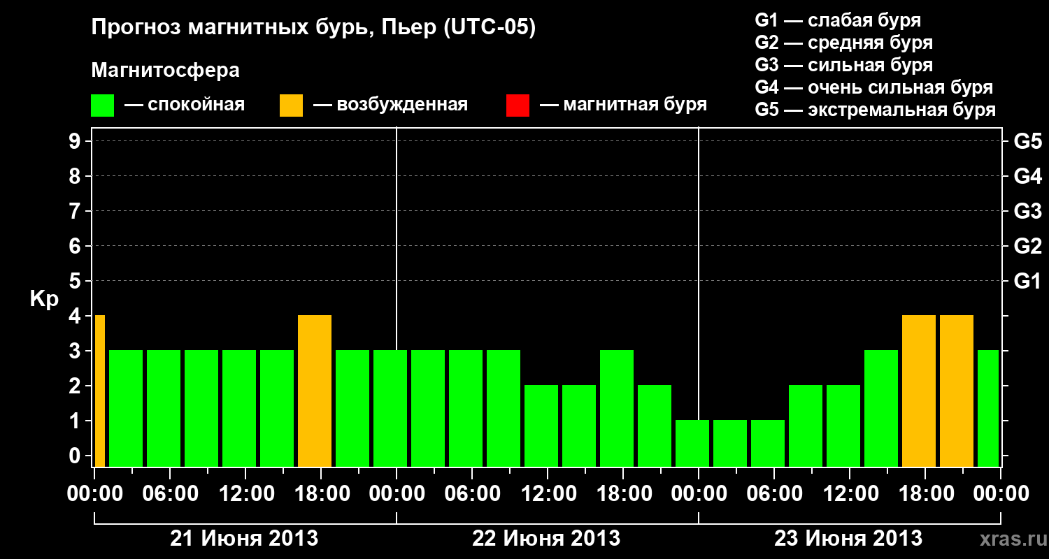 Прогноз магнитных бурь в Пьере — 21 июня 2013 года