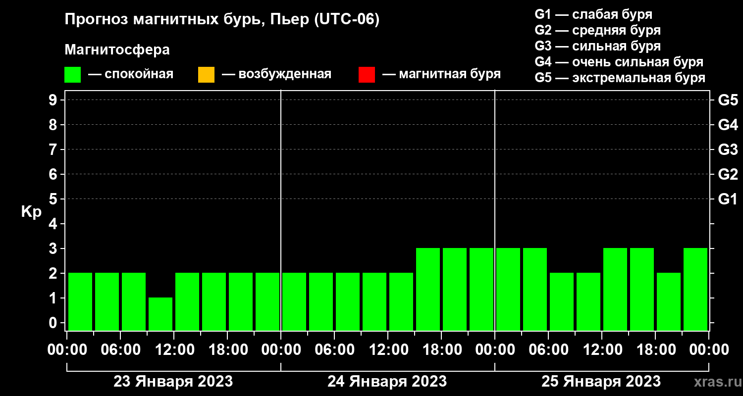 Прогноз магнитных бурь в Пьере на 23 января 2023 года