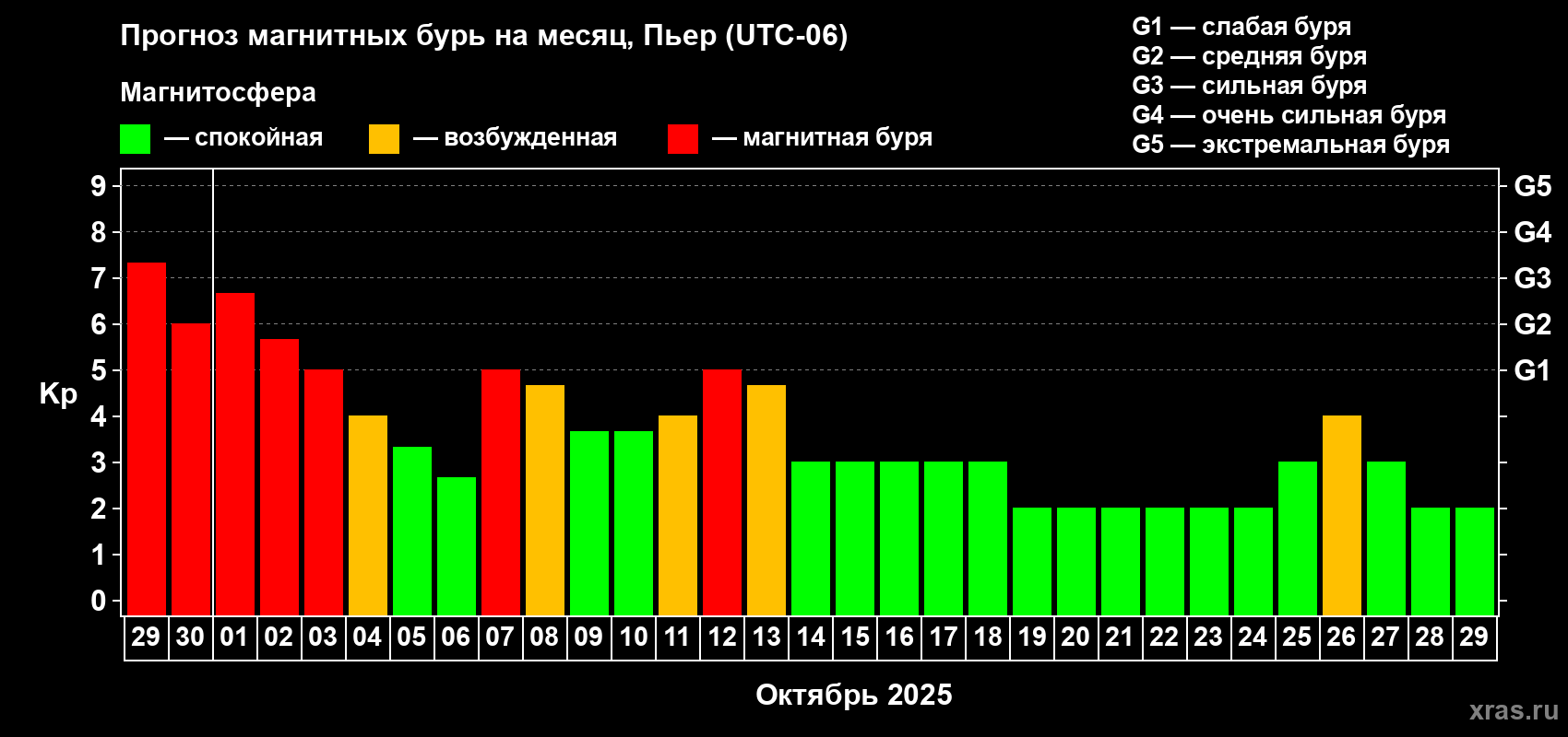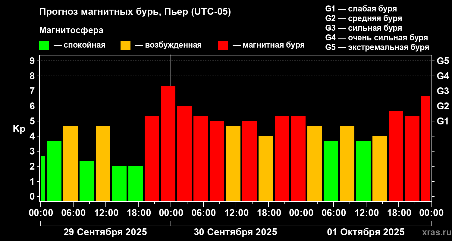 Прогноз магнитных бурь в Пьере — 29 сентября 2025 года
