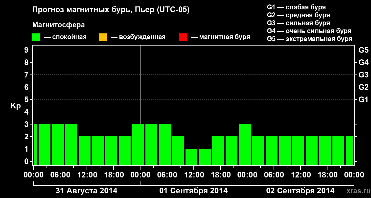 Прогноз магнитных бурь в Пьере — 31 августа 2014 года