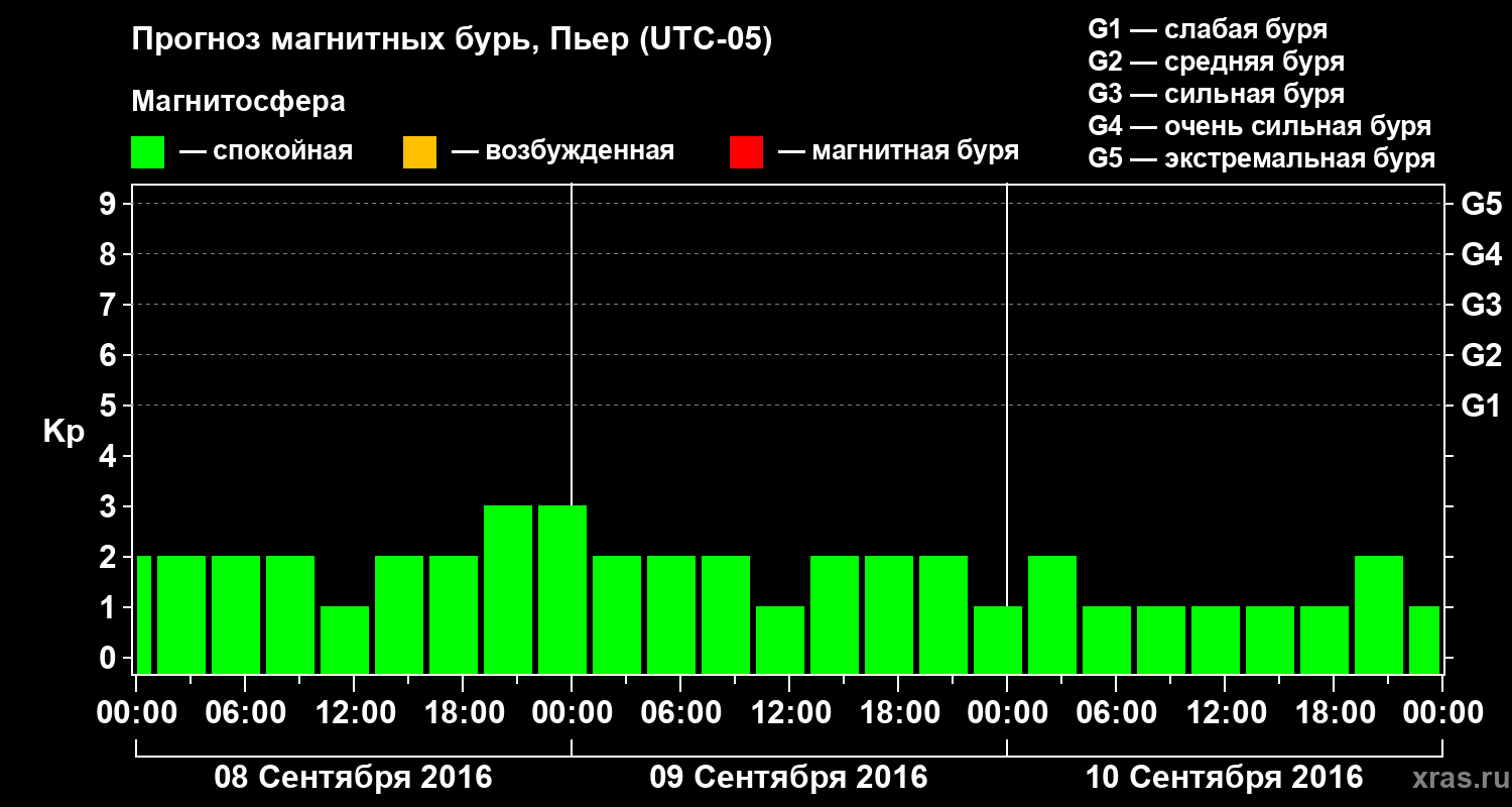 Прогноз магнитных бурь в Пьере на 8 сентября 2016 года