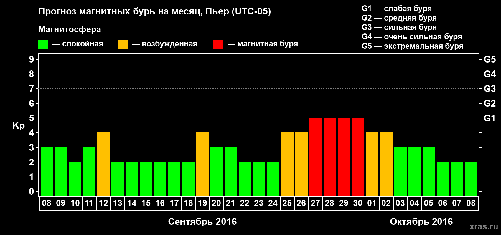 Прогноз магнитных бурь в Пьере — 8 сентября 2016 года