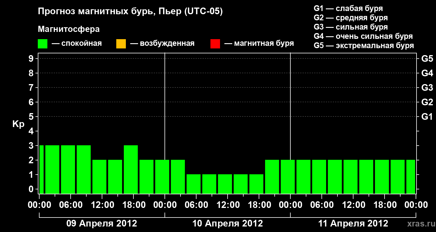 Прогноз магнитных бурь в Пьере на 9 апреля 2012 года