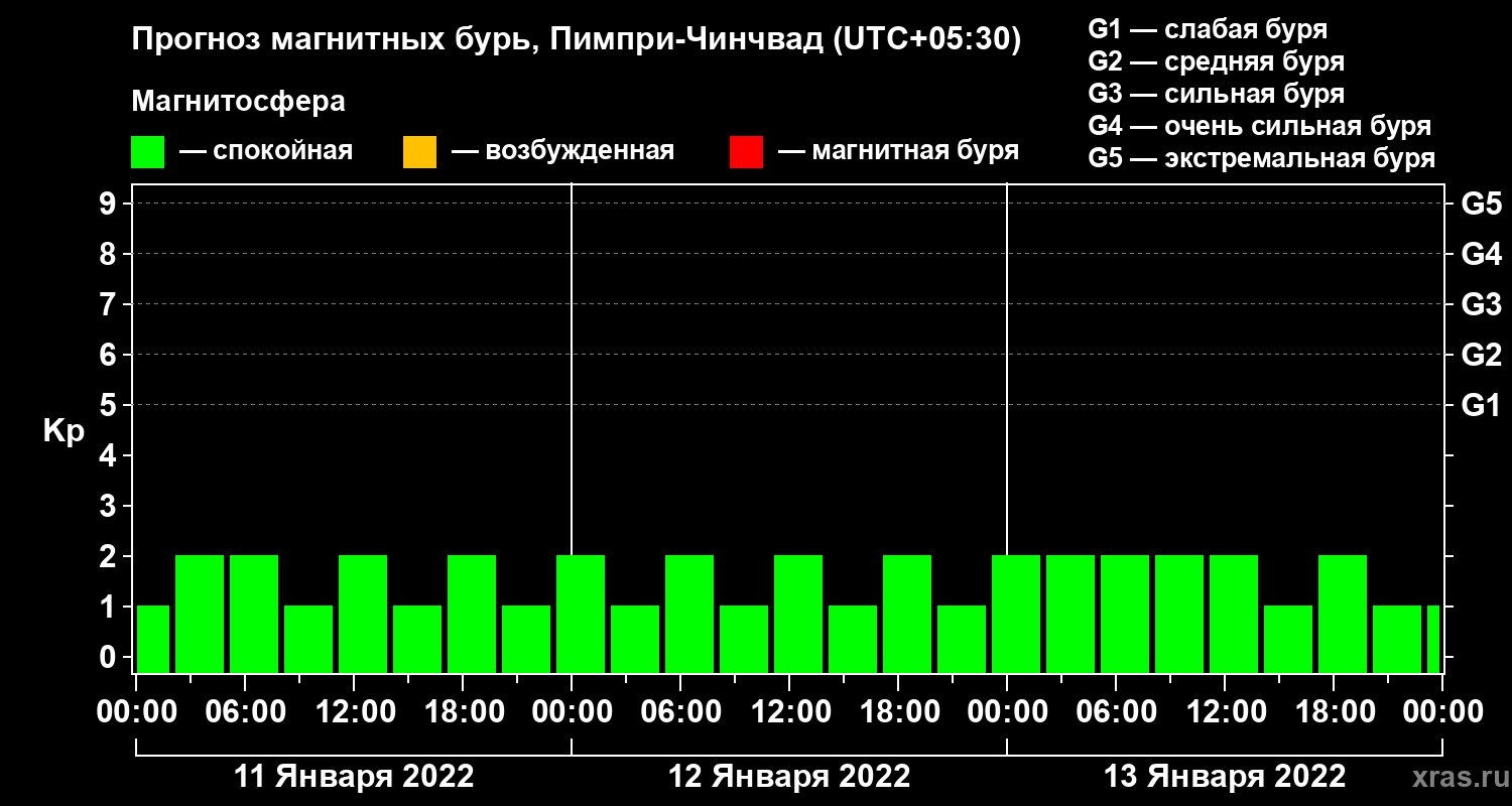 Прогноз магнитных бурь в Пимпри-Чинчваде на 11 января 2022 года