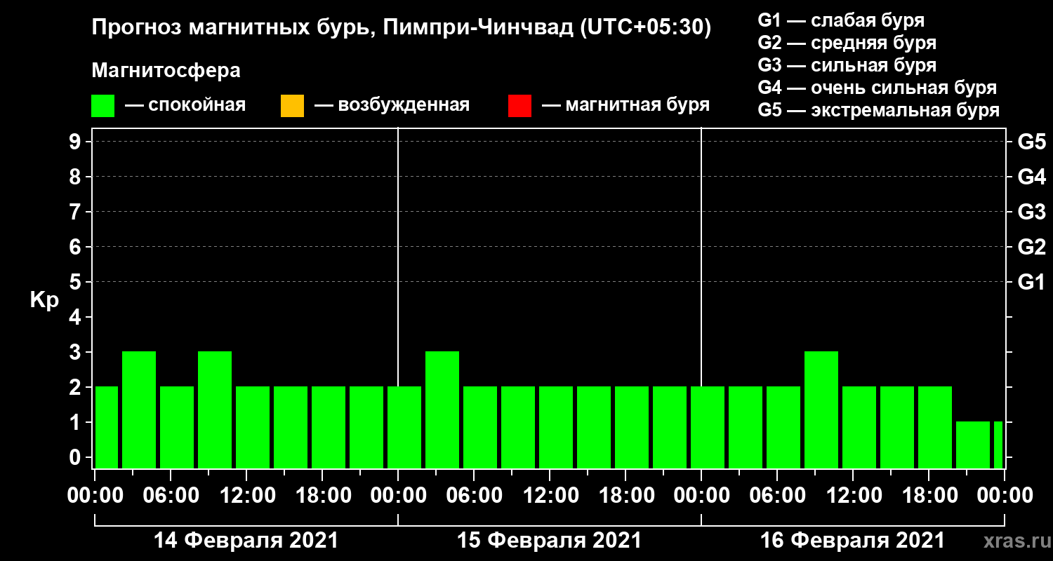 Прогноз магнитных бурь в Пимпри-Чинчваде — 14 февраля 2021 года