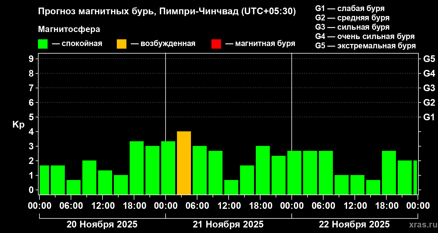 Прогноз магнитных бурь в Пимпри-Чинчваде — 20 ноября 2025 года