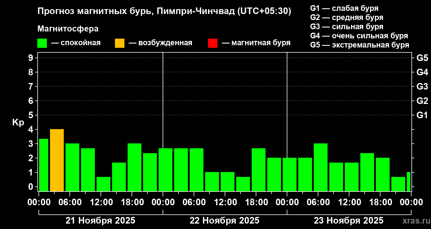 Прогноз магнитных бурь в Пимпри-Чинчваде — 21 ноября 2025 года
