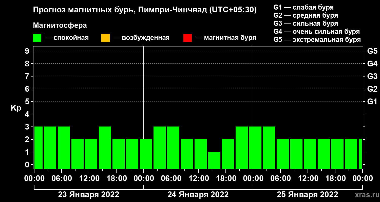 Прогноз магнитных бурь в Пимпри-Чинчваде на 23 января 2022 года