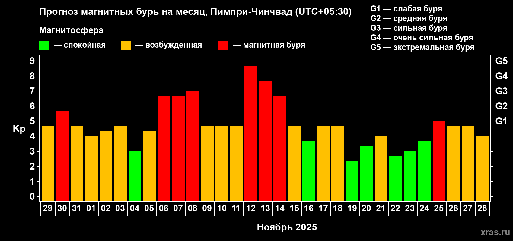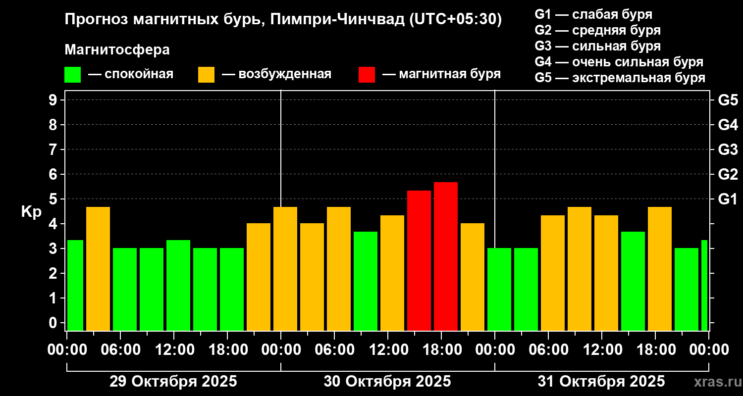 Прогноз магнитных бурь в Пимпри-Чинчваде — 29 октября 2025 года