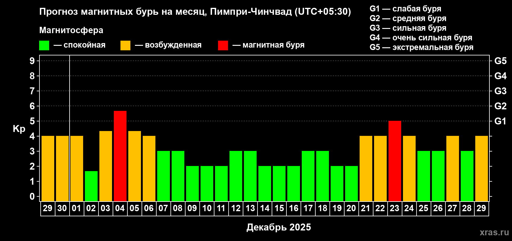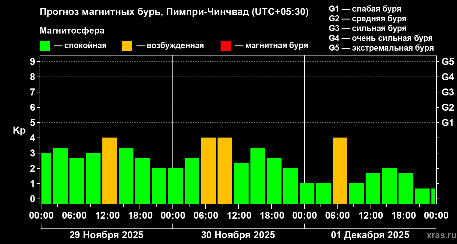 Прогноз магнитных бурь в Пимпри-Чинчваде — 29 ноября 2025 года