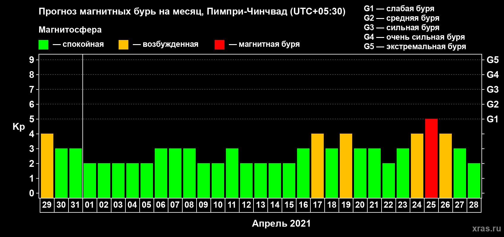 Прогноз магнитных бурь в Пимпри-Чинчваде на 29 марта 2021 года