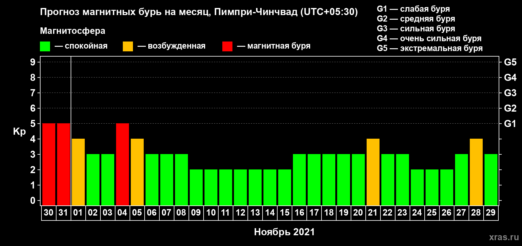 Прогноз магнитных бурь в Пимпри-Чинчваде — 30 октября 2021 года