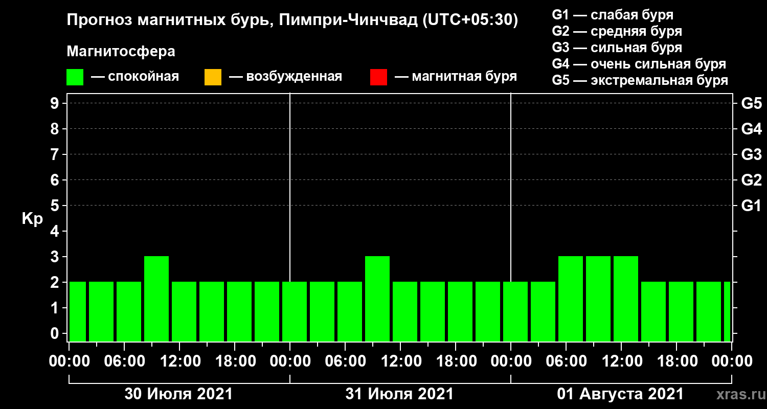 Прогноз магнитных бурь в Пимпри-Чинчваде — 30 июля 2021 года