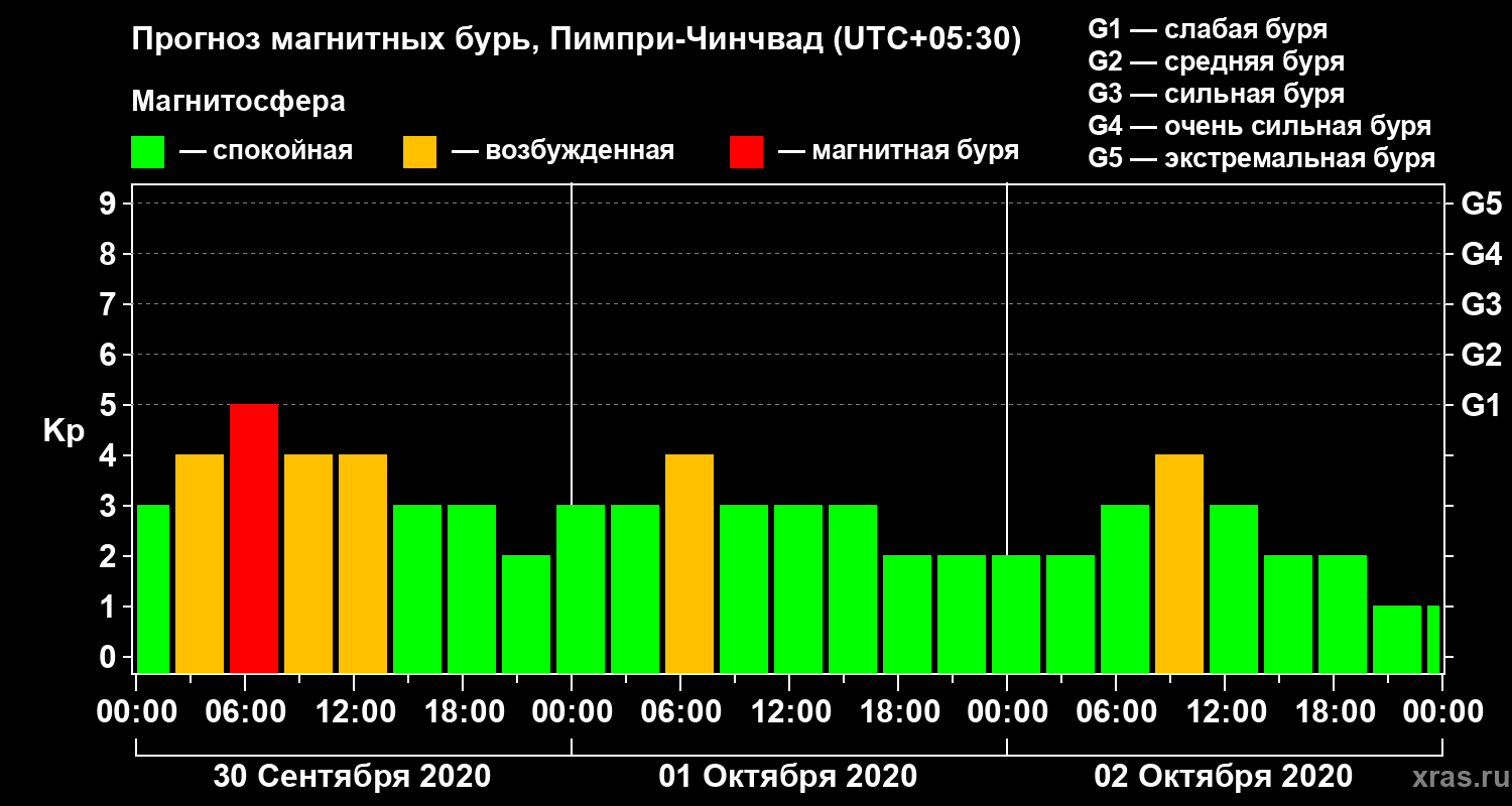 Прогноз магнитных бурь в Пимпри-Чинчваде — 30 сентября 2020 года
