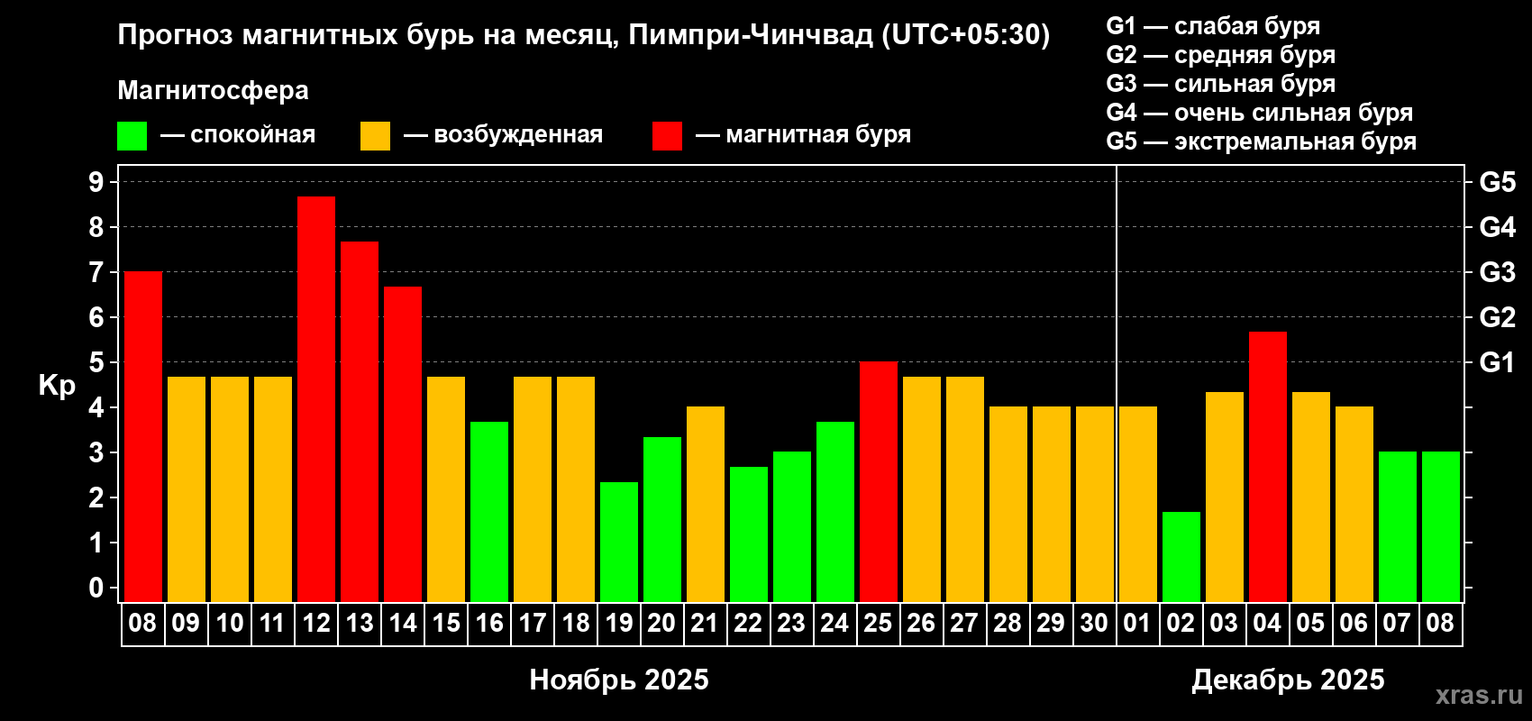 Прогноз магнитных бурь в Пимпри-Чинчваде — 8 ноября 2025 года
