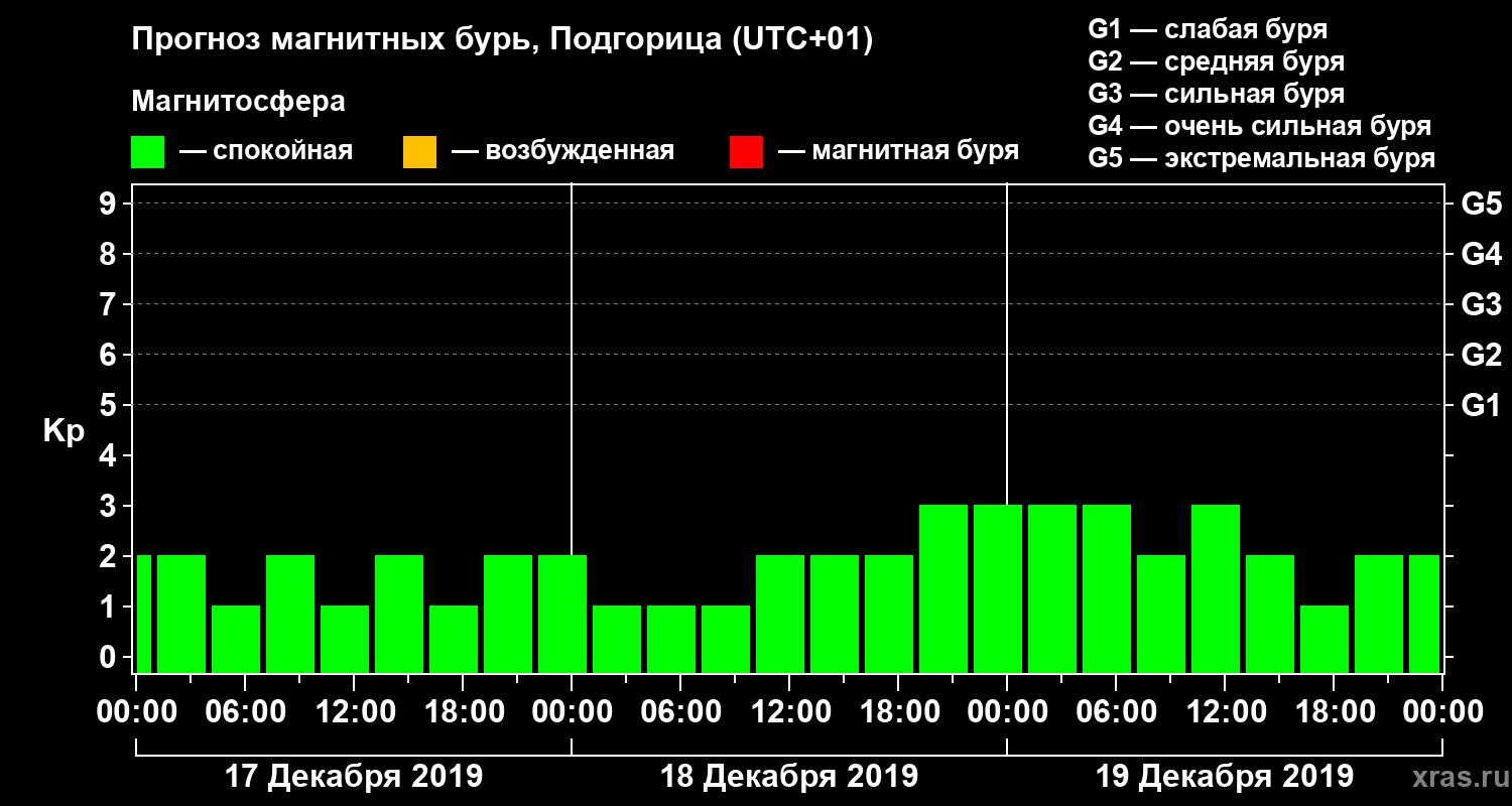 Прогноз магнитных бурь в Подгорице — 17 декабря 2019 года