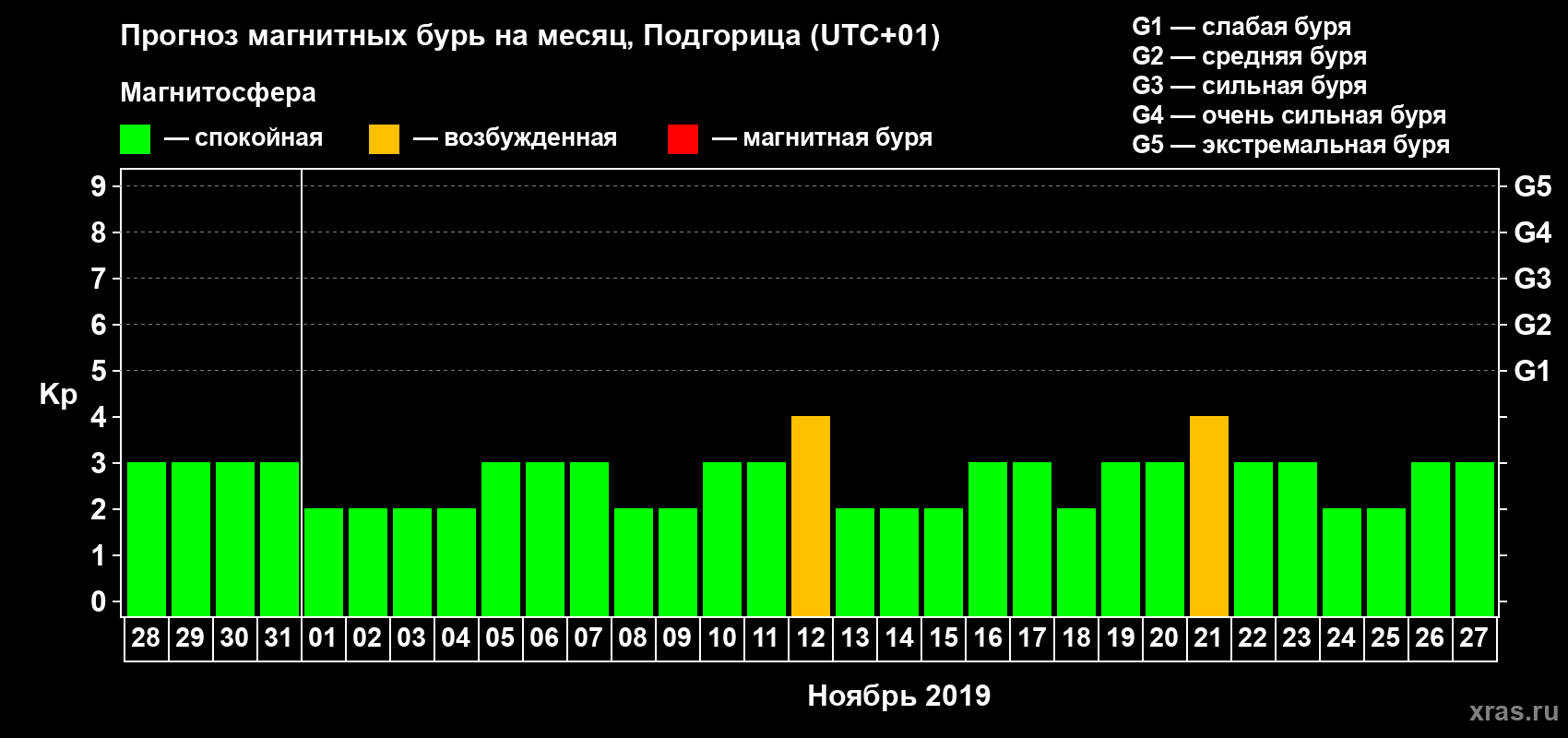 Прогноз магнитных бурь в Подгорице — 28 октября 2019 года