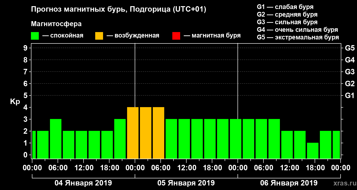 Прогноз магнитных бурь в Подгорице — 4 января 2019 года