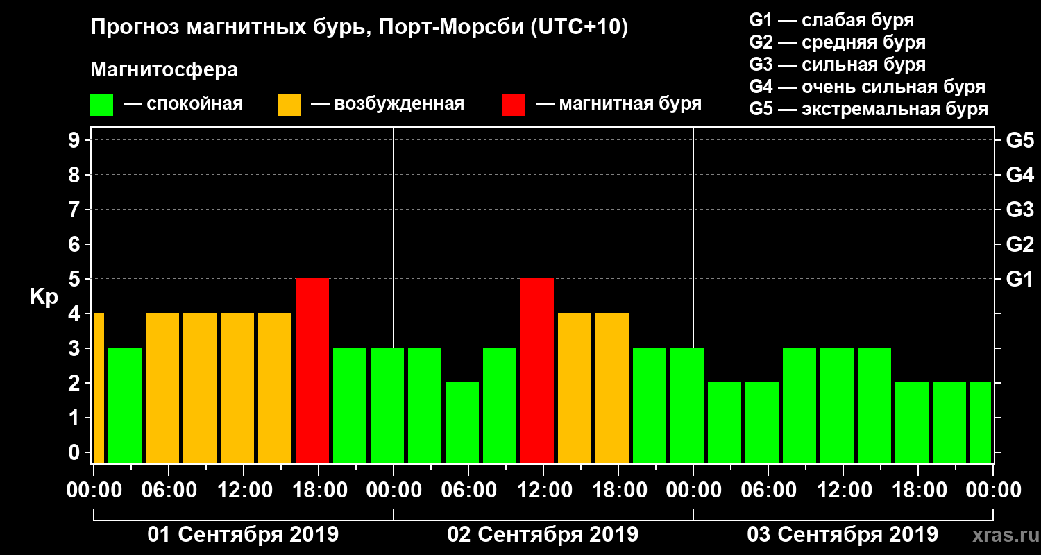 Прогноз магнитных бурь Порт-Морсби — 1 сентября 2019 года