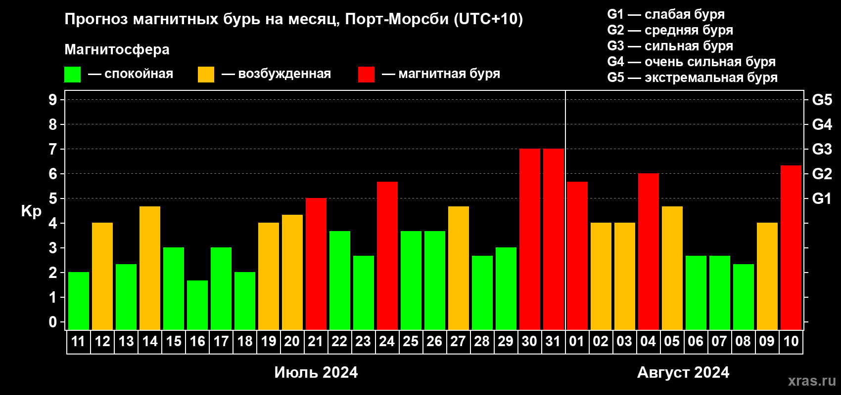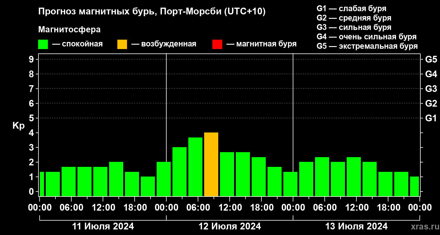 Прогноз магнитных бурь Порт-Морсби — 11 июля 2024 года