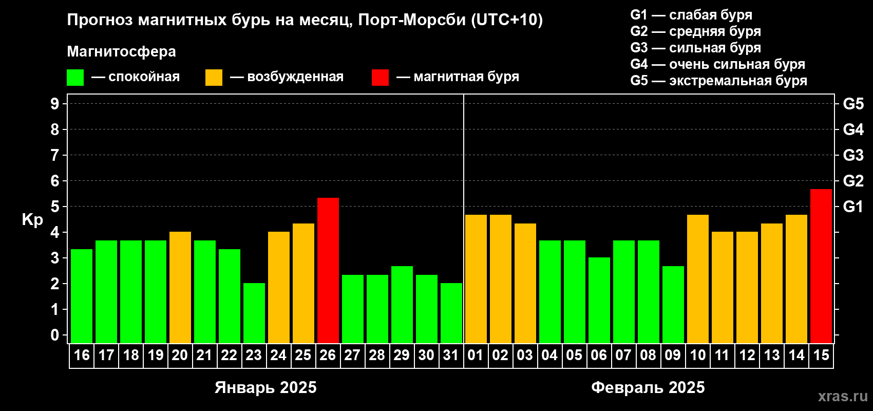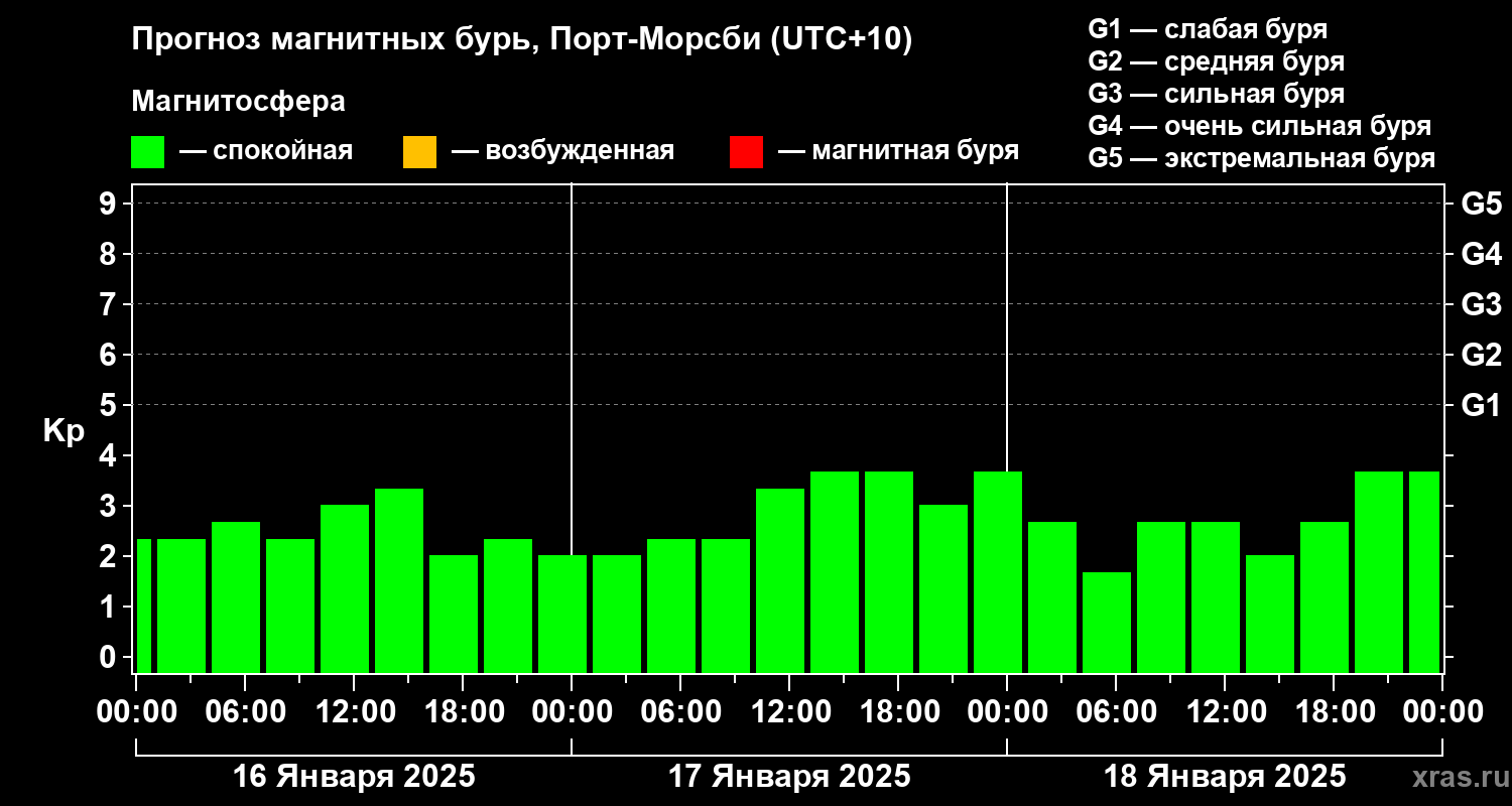 Прогноз магнитных бурь Порт-Морсби на 16 января 2025 года