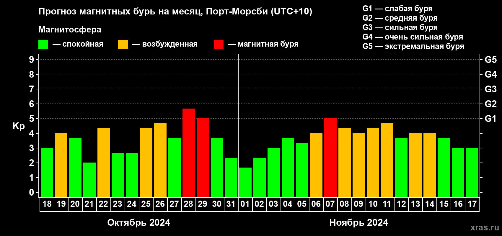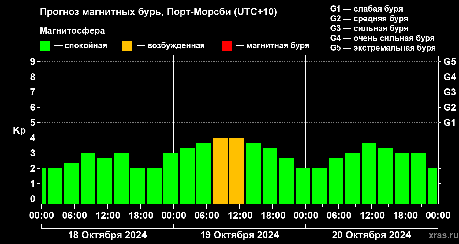 Прогноз магнитных бурь Порт-Морсби — 18 октября 2024 года