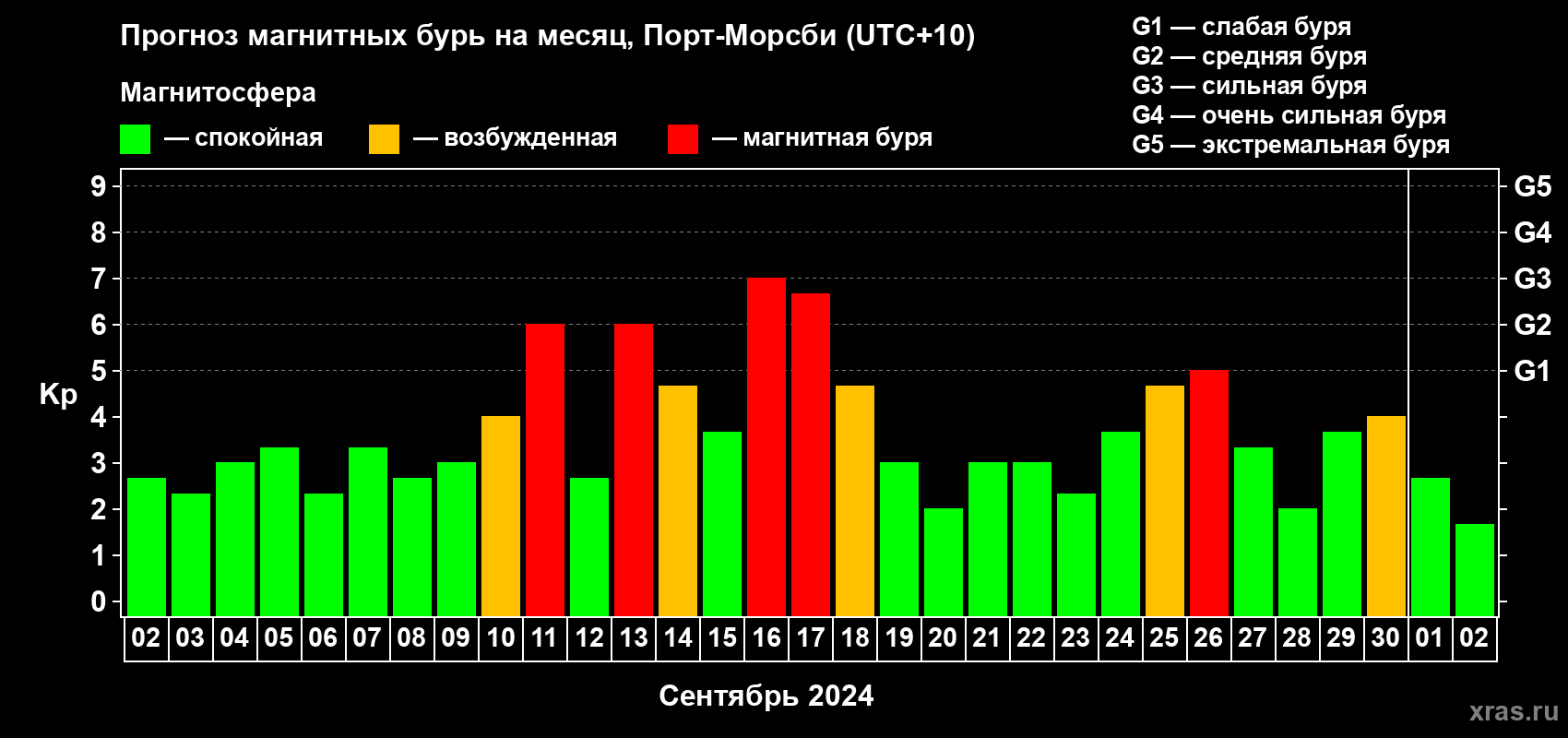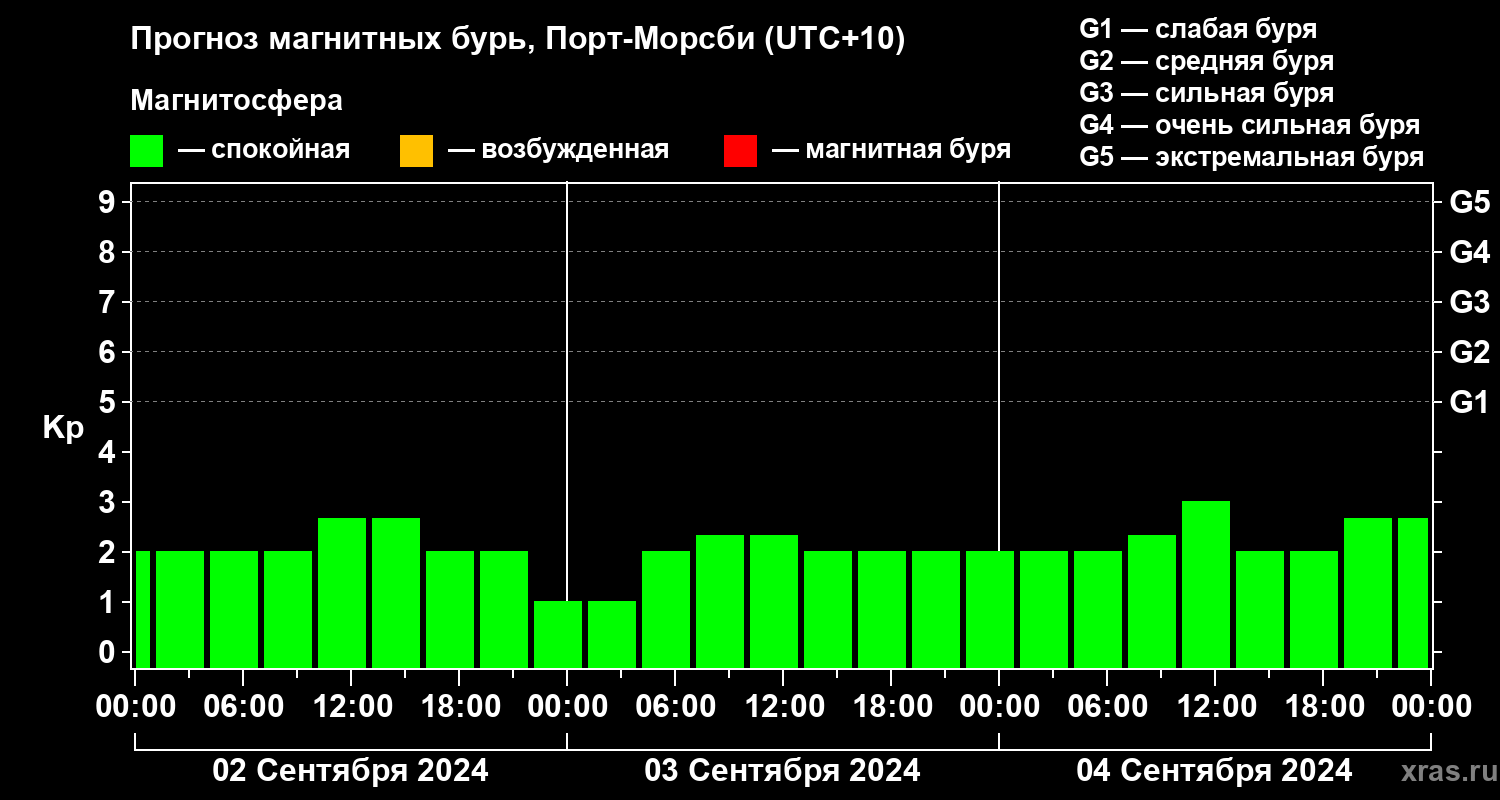 Прогноз магнитных бурь Порт-Морсби — 2 сентября 2024 года