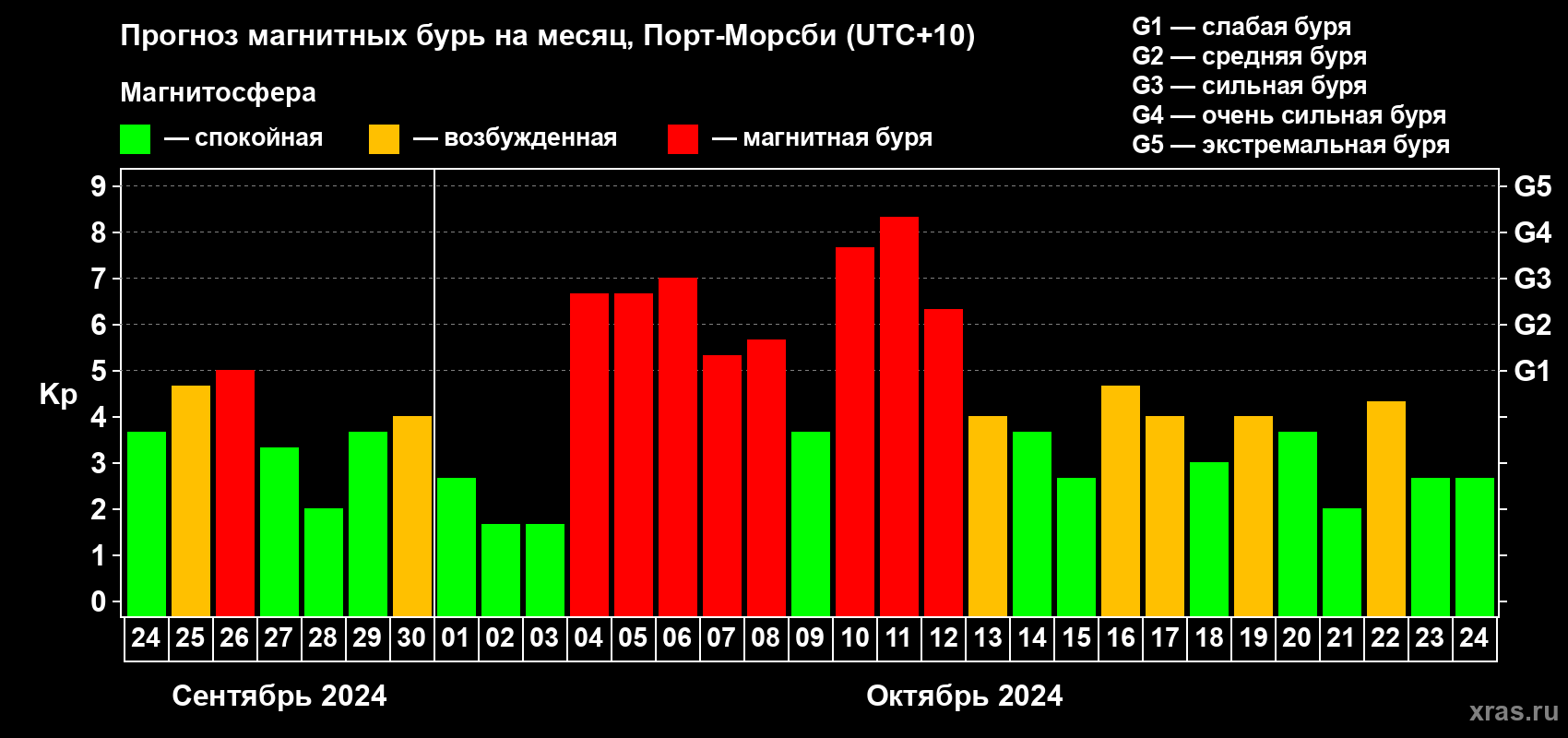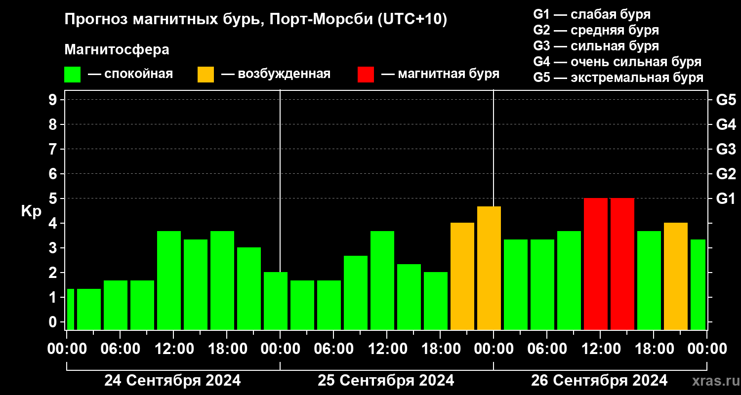 Прогноз магнитных бурь Порт-Морсби — 24 сентября 2024 года