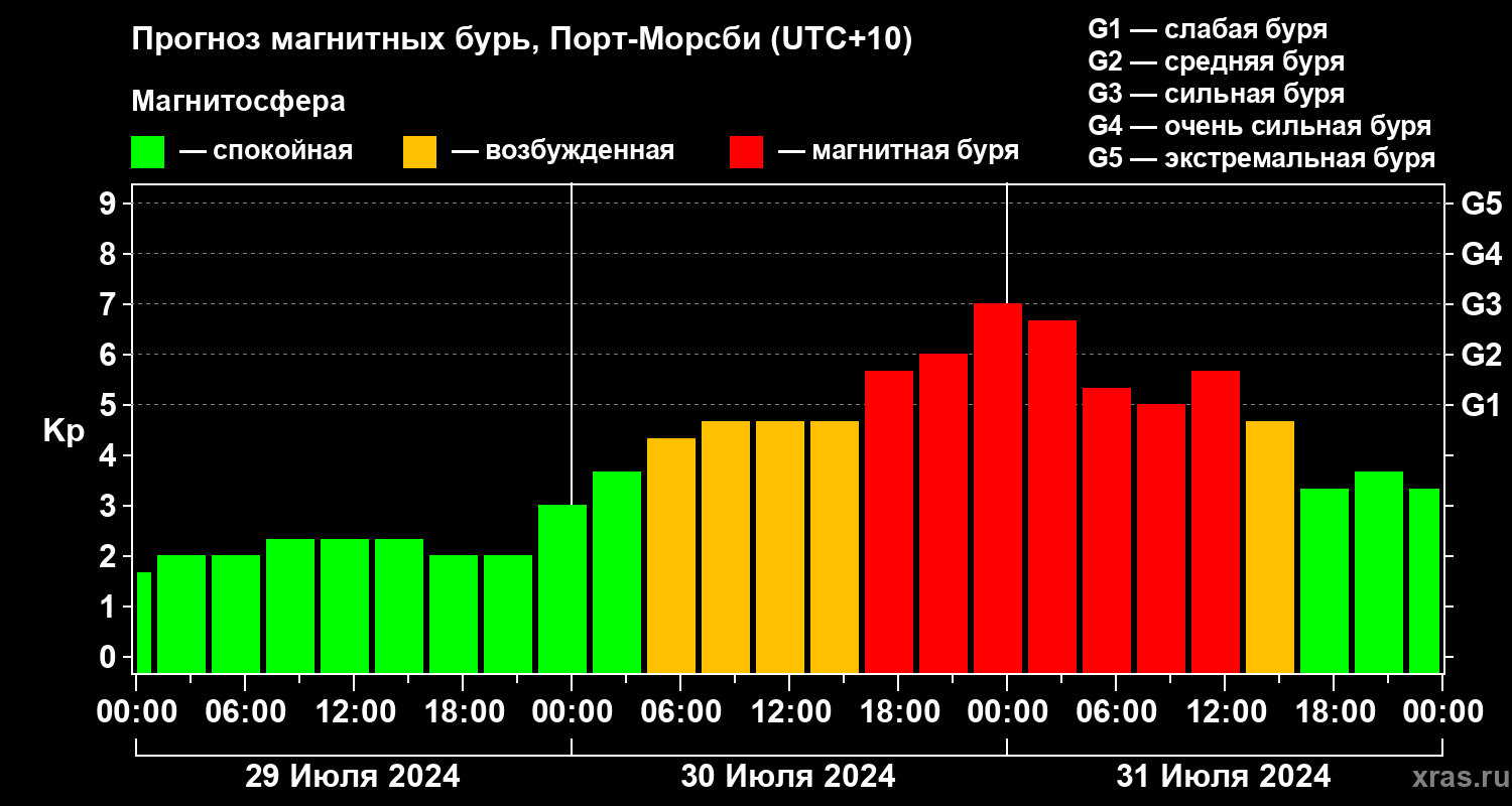 Прогноз магнитных бурь Порт-Морсби — 29 июля 2024 года