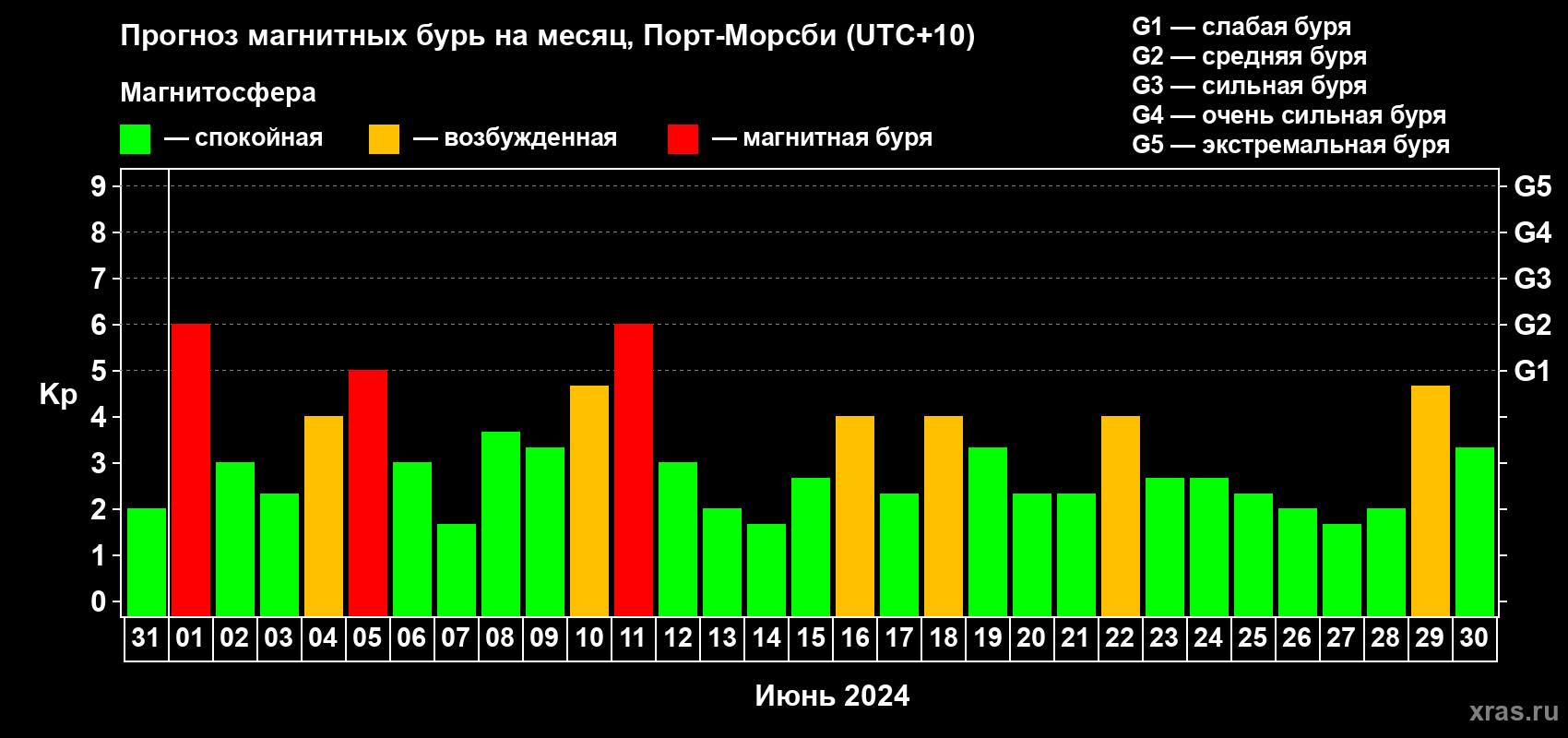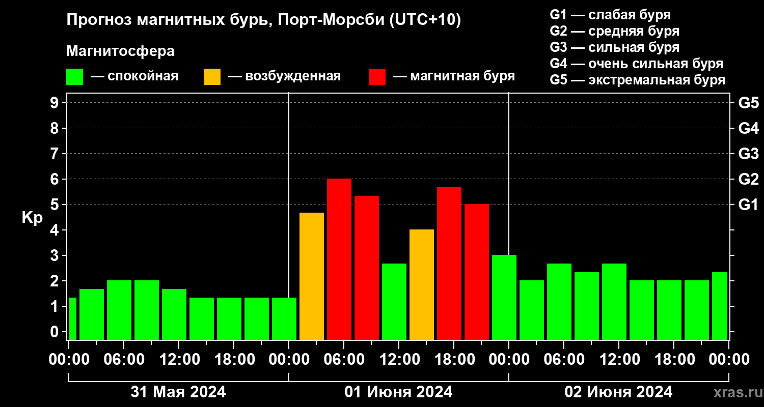 Прогноз магнитных бурь Порт-Морсби — 31 мая 2024 года