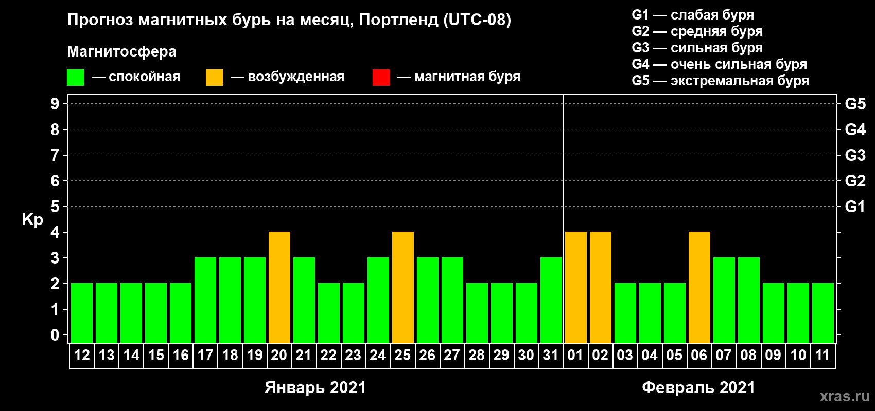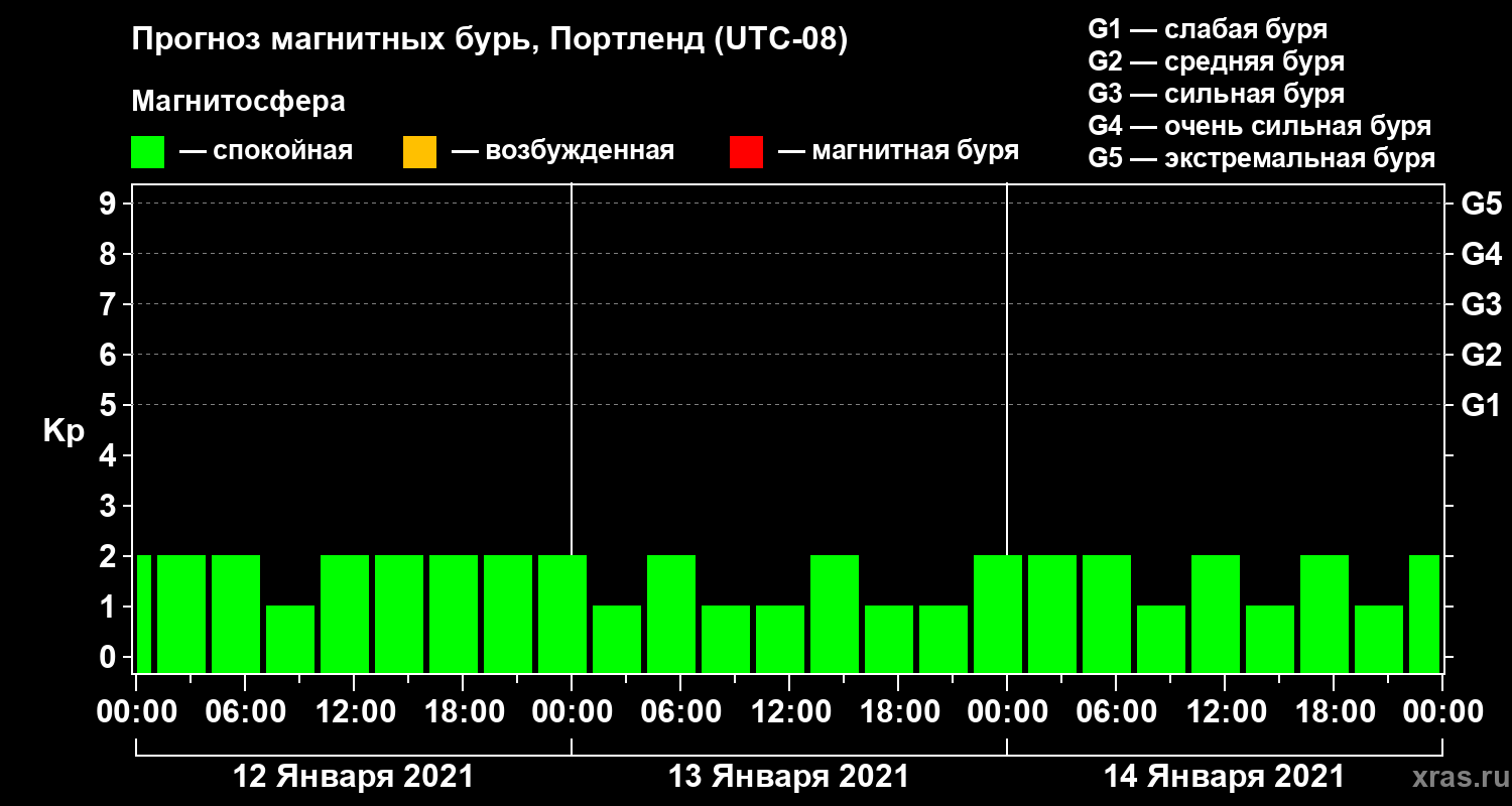 Прогноз магнитных бурь в Портленде — 12 января 2021 года
