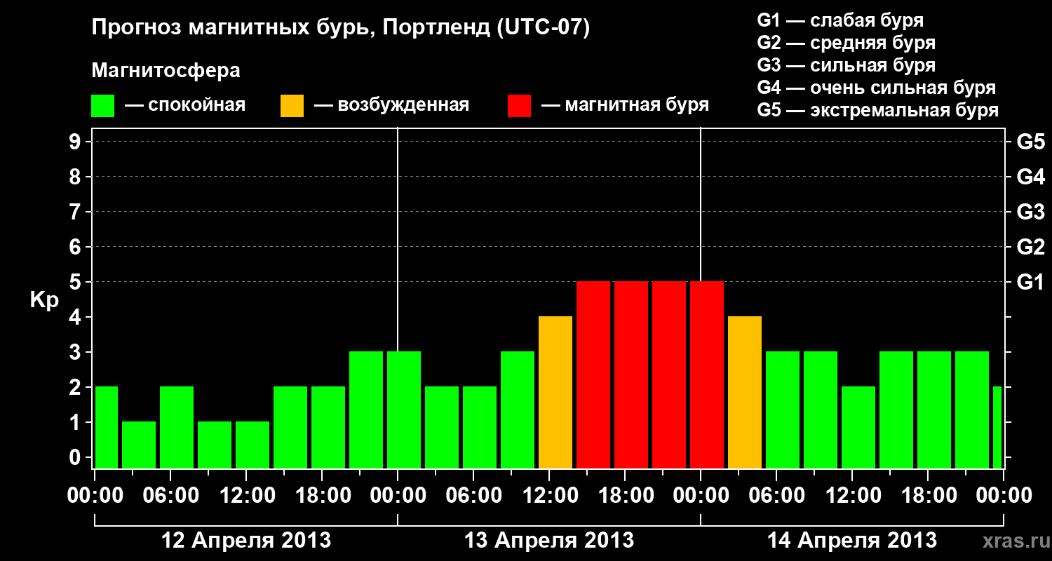 Прогноз магнитных бурь в Портленде на 12 апреля 2013 года