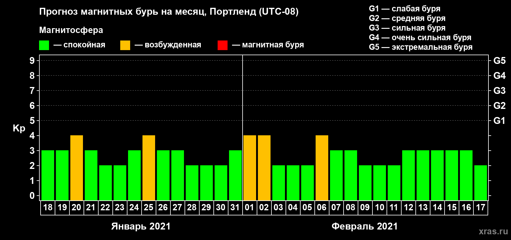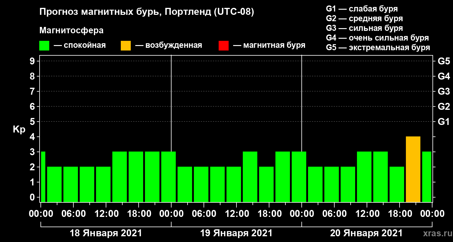 Прогноз магнитных бурь в Портленде — 18 января 2021 года