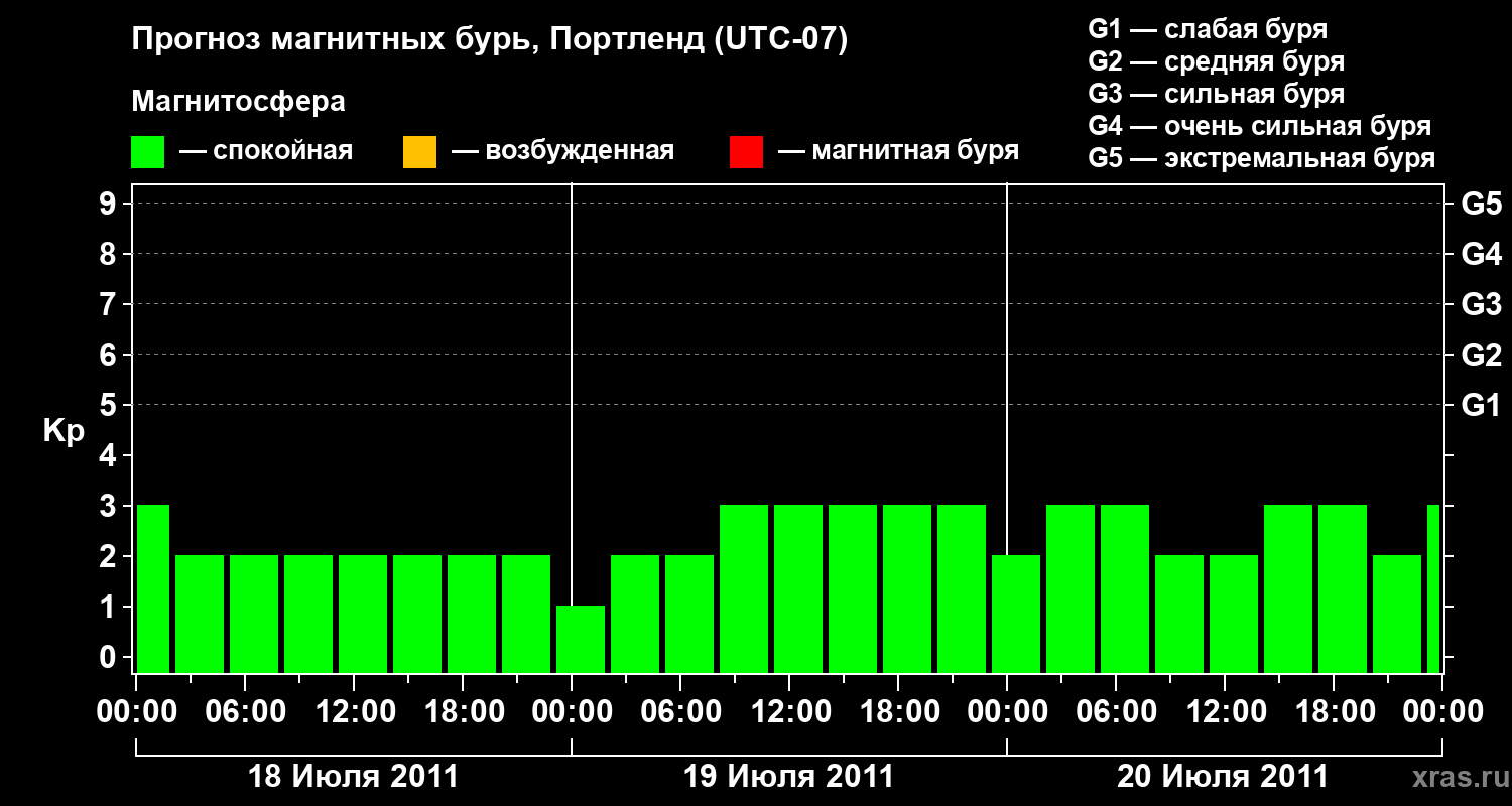 Прогноз магнитных бурь в Портленде — 18 июля 2011 года
