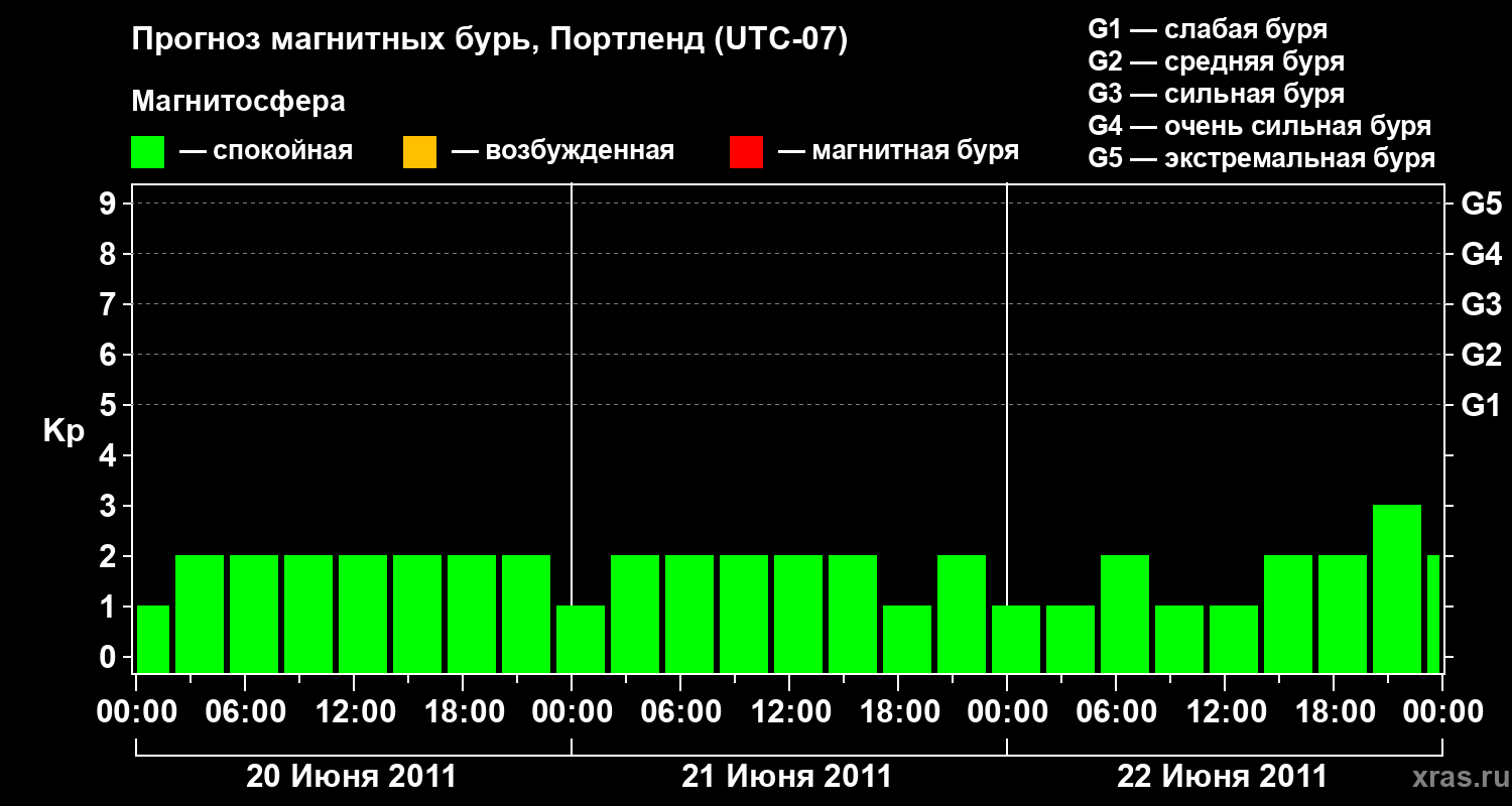 Прогноз магнитных бурь в Портленде на 20 июня 2011 года